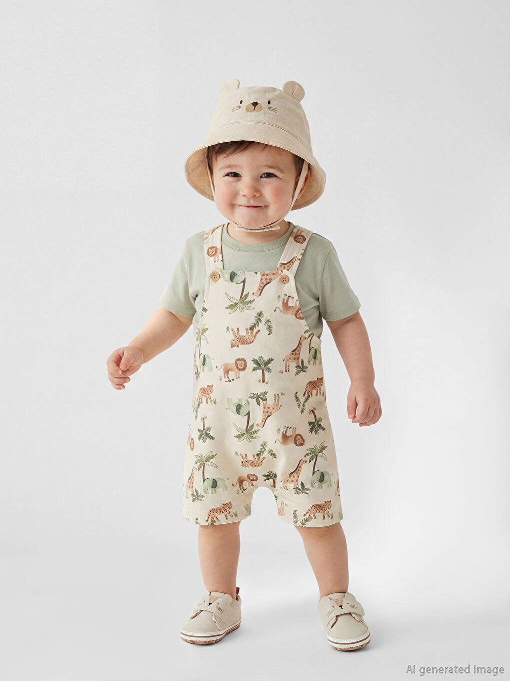 العلامات: 2-piece set, animal print romper, beige baby clothes, boys baby romper, cotton baby clothes, newborn outfit