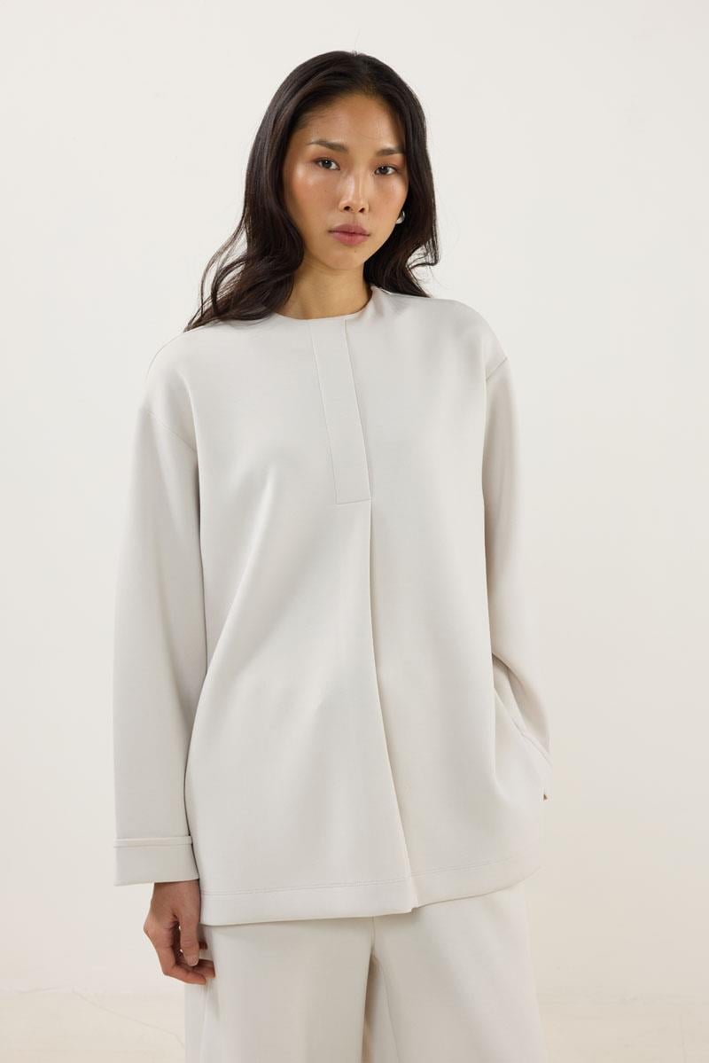 العلامات: women's fashion, تصميم مفصل, كم طويل, ياقة دائرية