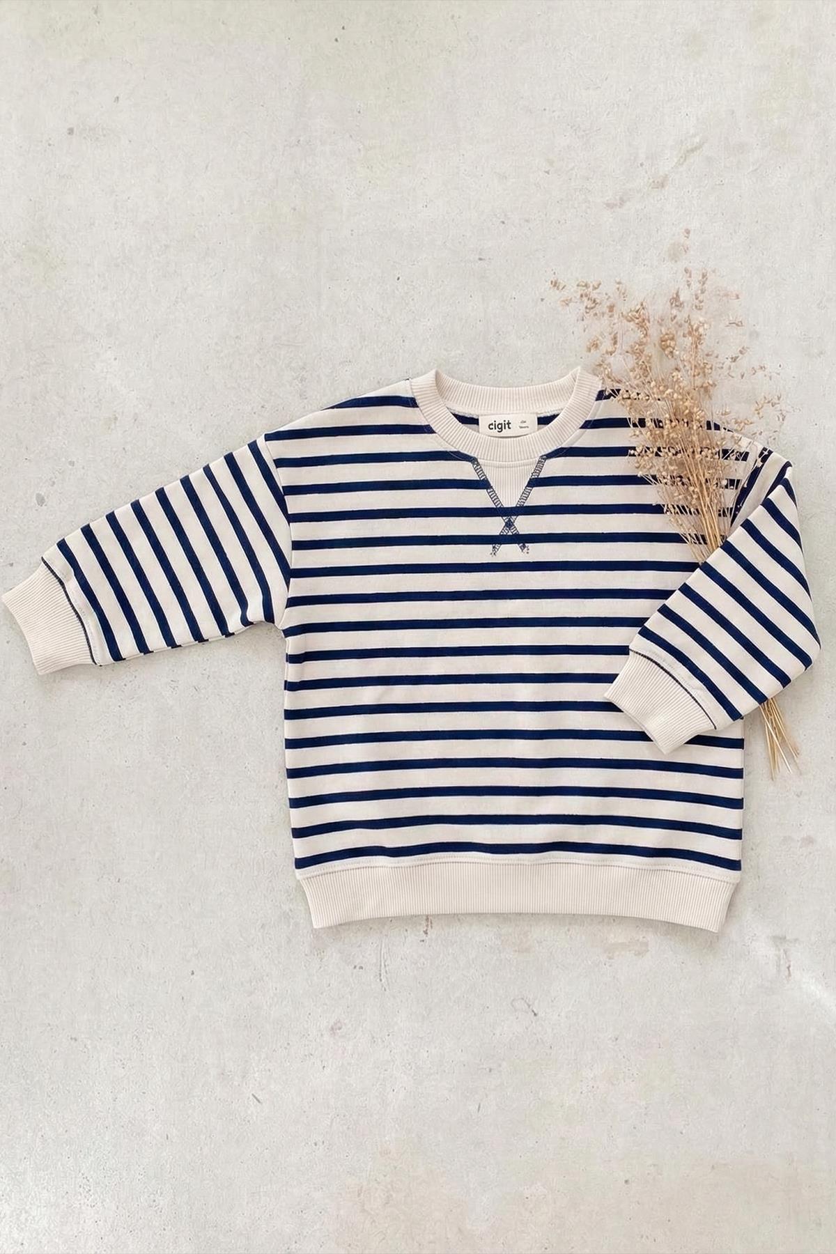 سويتشيرت مضغوط أزرق بحري بشقوق جانبية