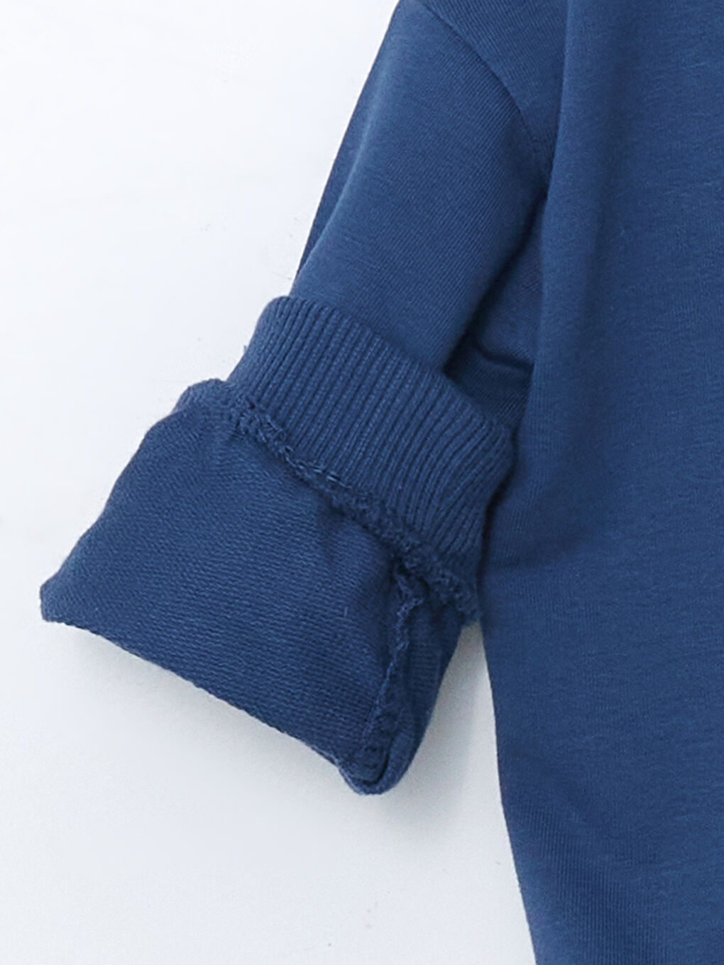 سترة رياضية وسراويل مطبوعة للأطفال الذكور باللون الأزرق الداكن – قطعتان