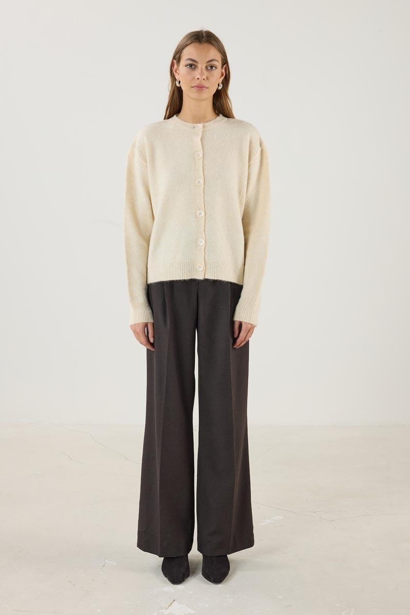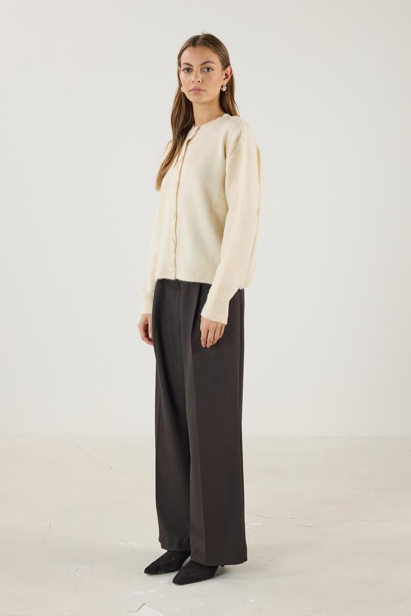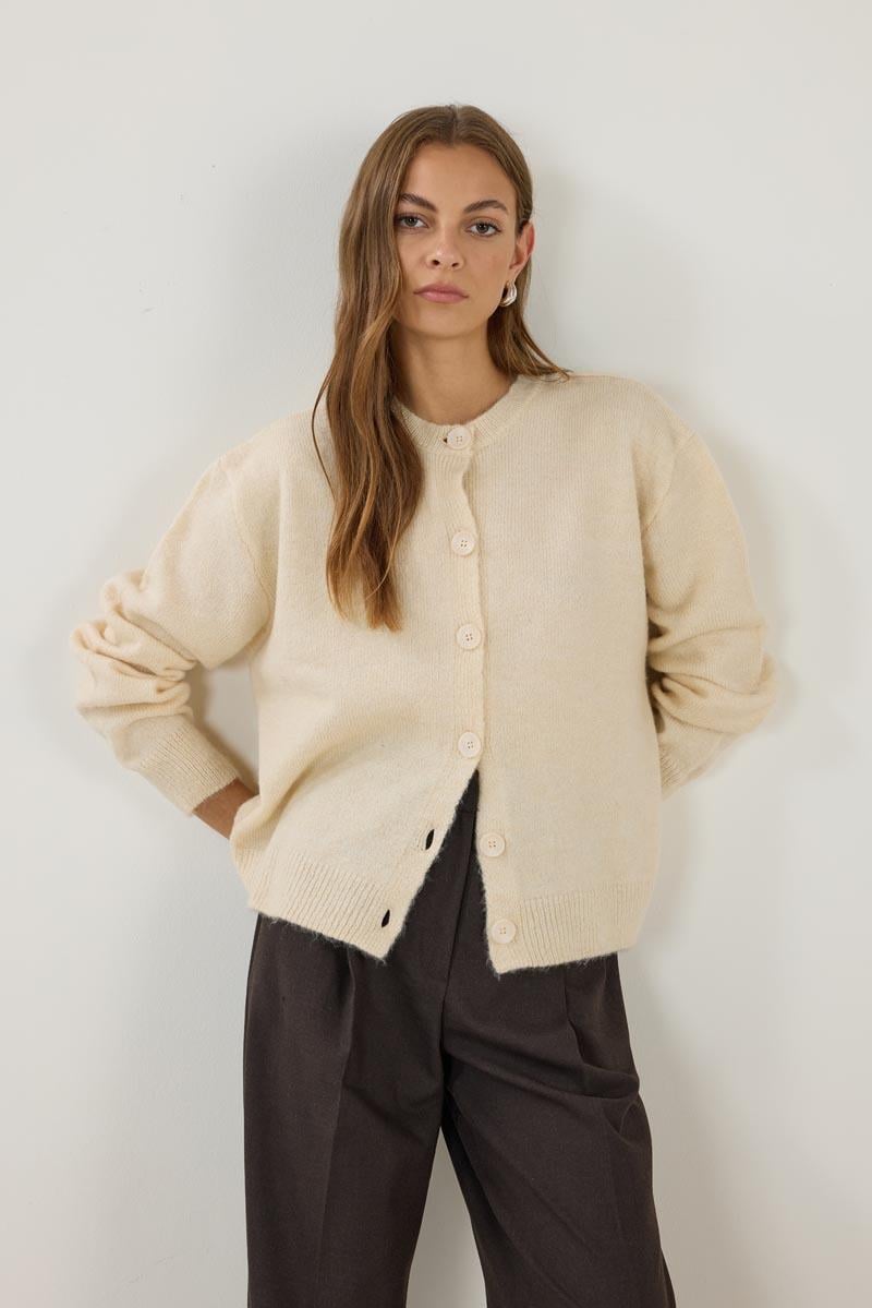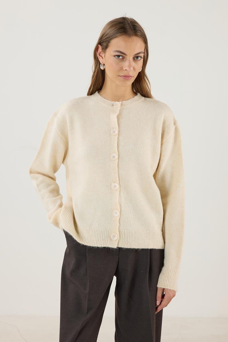 سترة صوفية قصيرة ذات أزرار باللون الكريمي