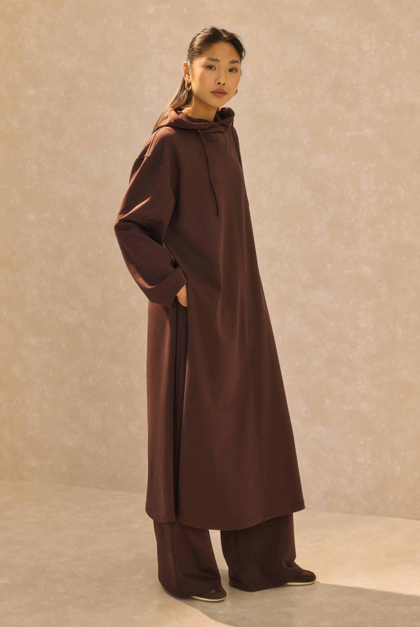 مصنوعة من مزيج 79% قطن، 17% بوليستر، و4% إيلاستين، تقدم هذه السترة الطويلة مزيجًا من الراحة الطبيعية والمرونة. بينما يوفر محتوى القطن بنية قابلة للتنفس وصديقة للبشرة، يضيف البوليستر متانة وحفاظًا على الشكل للقماش. تضمن إضافة الإيلاستين حرية الحركة طوال اليوم من خلال توفير المرونة. تقدم استخدامًا مريحًا بفضل قصةها الطويلة والمريحة، يكتسب الموديل مظهرًا رياضيًا بتفاصيل القبة. إنها قطعة مريحة وعصرية تكمل مجموعاتك الرياضية، خاصة للاستخدام اليومي. معلومات المقاس: يمكنك اختيار مقاسك المعتاد. تعليمات العناية: اغسل على 30°C مع ألوان متشابهة. لا تستخدم المبيض. كوي على درجة حرارة منخفضة. الطول: 125 سم (قد يختلف طول المنتج بمقدار 1-5 سم بين دفعات الإنتاج.) جدول المقاسات: الصدر الوركين الأكمام العضد المقاس S-M: 118 سم 140 سم 54 سم 47 سم المقاس M-L: 122 سم 144 سم 54,5 سم 48 سم قياسات الموديل: الطول: 176 سم الصدر: 80 سم الخصر: 60 سم الوركين: 90 سم المقاس الذي ترتديه الموديل: S-M