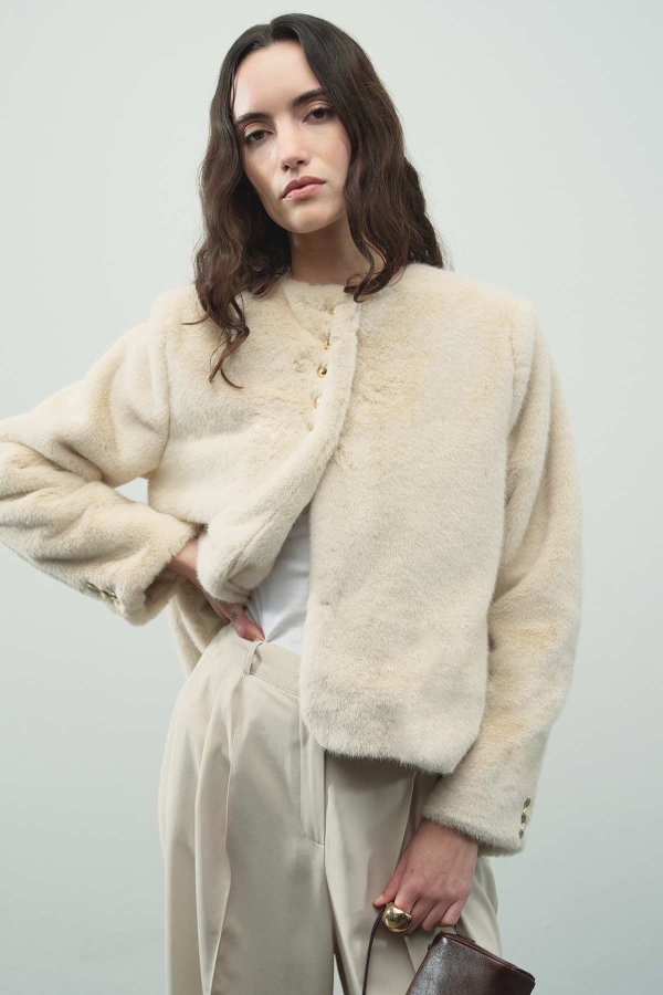 مميزات السترة القصيرة ذات الأزرار المخملية بحجارة: ياقة دراجة، إغلاق بأزرار، أكمام مزينة بأزرار، مقاس عادي، سترة مخملية قصيرة مبطنة. المحتوى والعناية: 100% بولي إيستر. يوصى بالتنظيف الجاف. قد تختلف القياسات اليدوية بمقدار 2-3 سم. مقاس العارضة: صغير قياسات العارضة: الطول: 1.76 سم، الصدر: 79 سم، الخصر: 64 سم، الورك: 92 سم