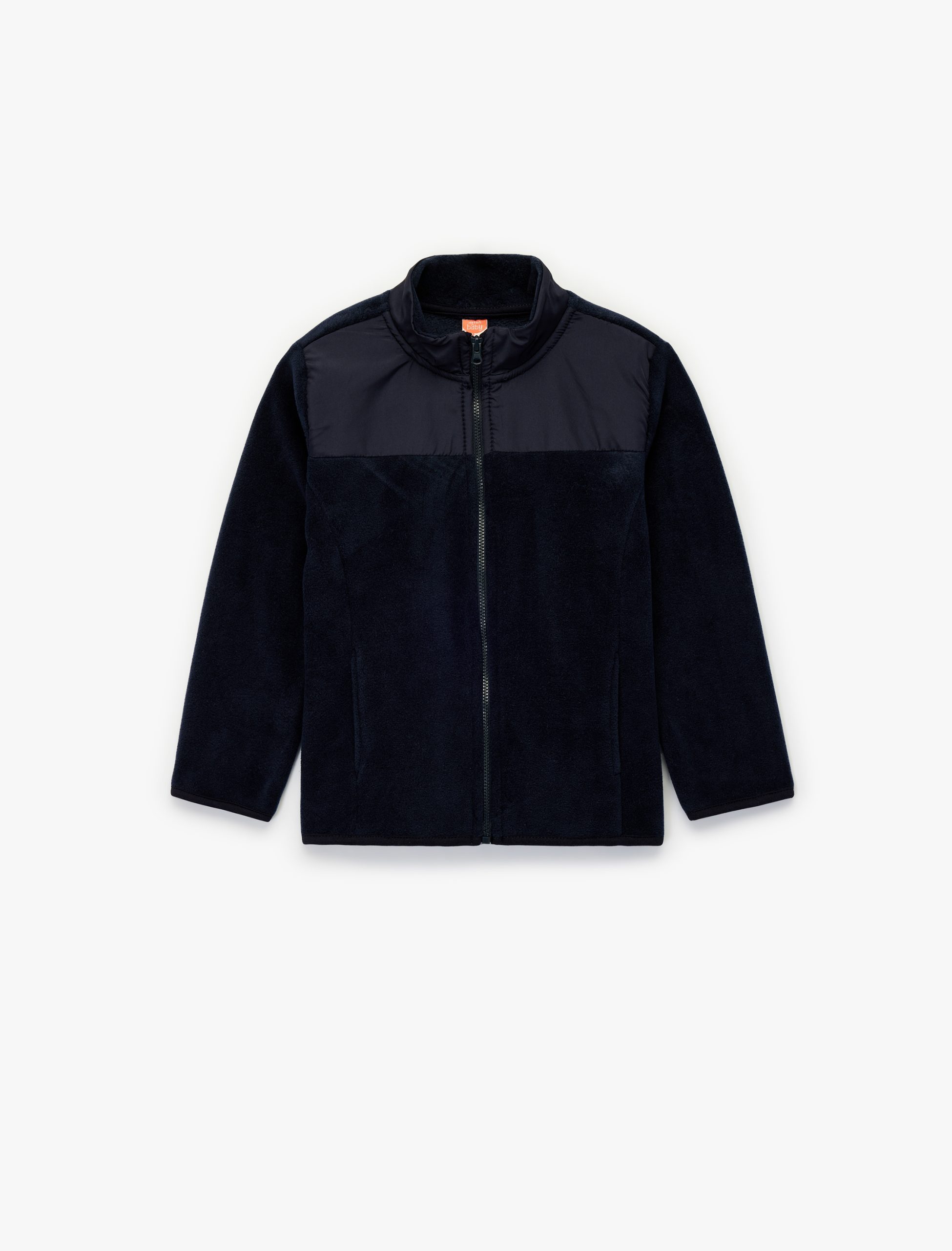 سترة قطبية للأطفال الذكور ذات أكمام طويلة وجيب وطوق مستقيم وسحاب