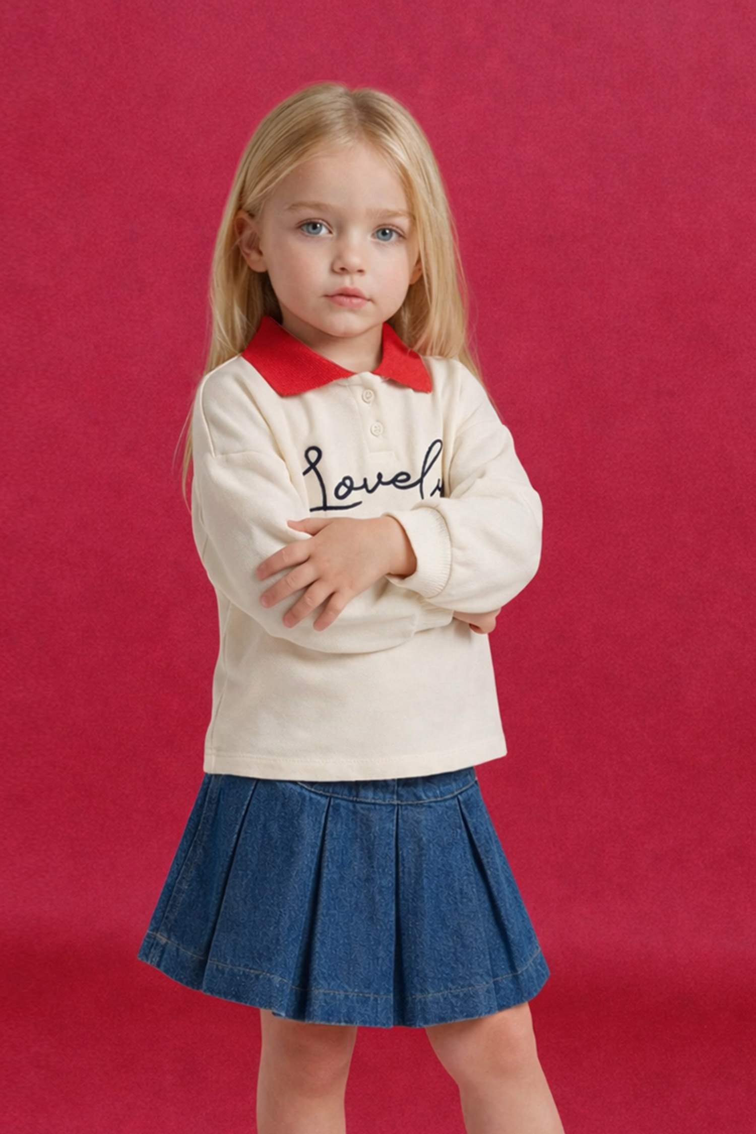 تقدم هذه السترة القطنية الجميلة بتصميم بولو تفاصيل مطرزة بقلوب ساحرة وقصة كبيرة الحجم، مما يوفر راحة ودفئًا لفتيات الأطفال. تشكل خيارًا أنيقًا وممتعًا للملابس اليومية.
