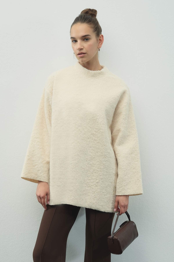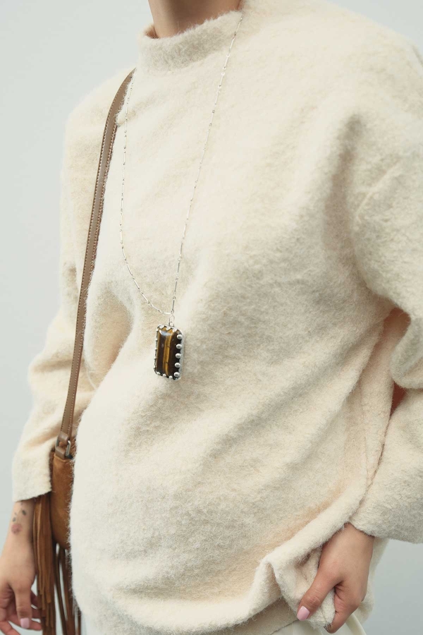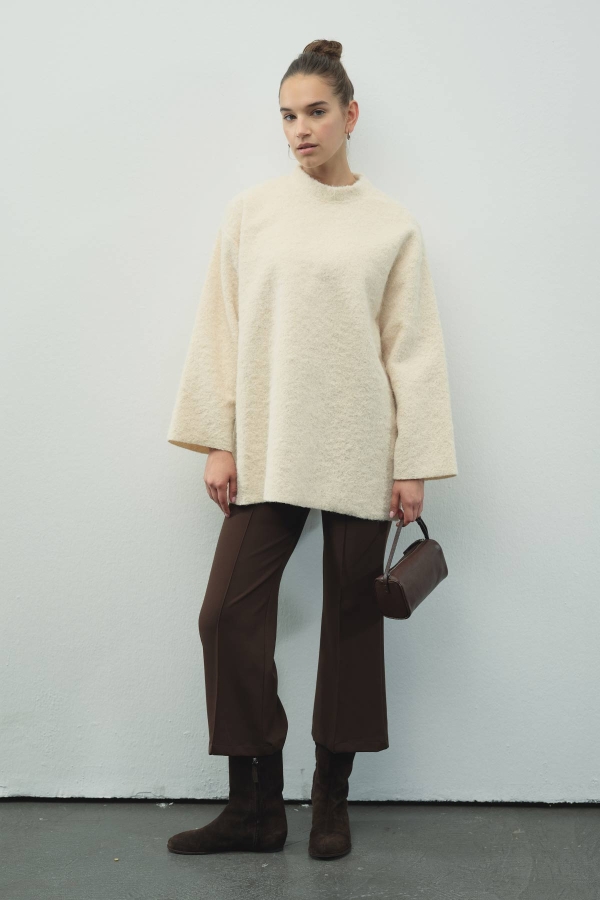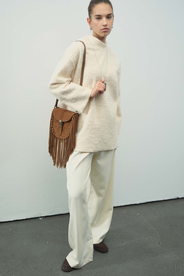 بلوزة بلون الكريمة بتفاصيل جسرية