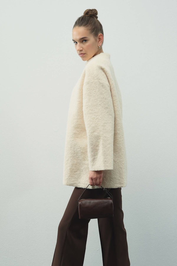 سترة كروية بلون البيج الممزوج بنسيج