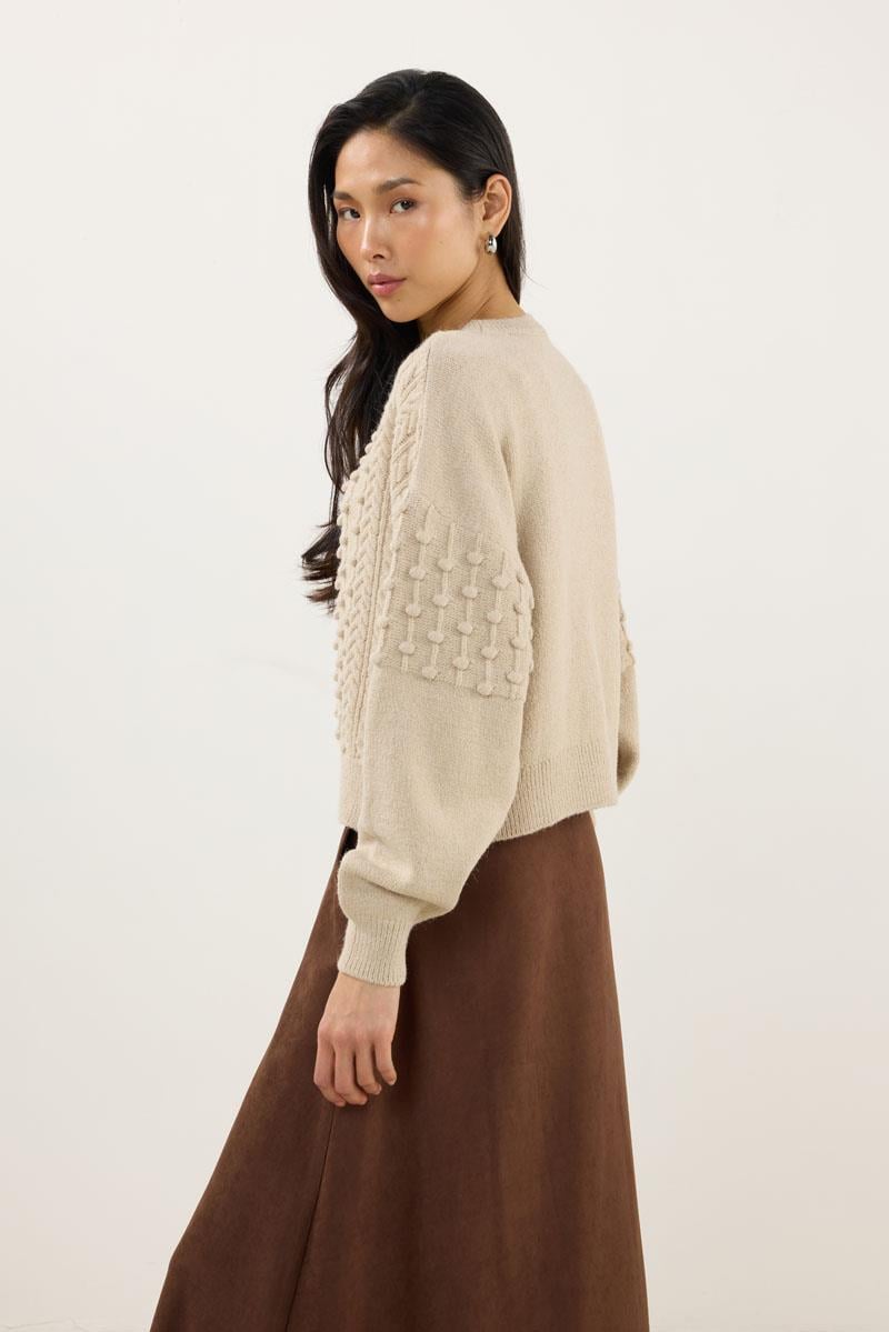 سترة كريم مع تفاصيل عقدة