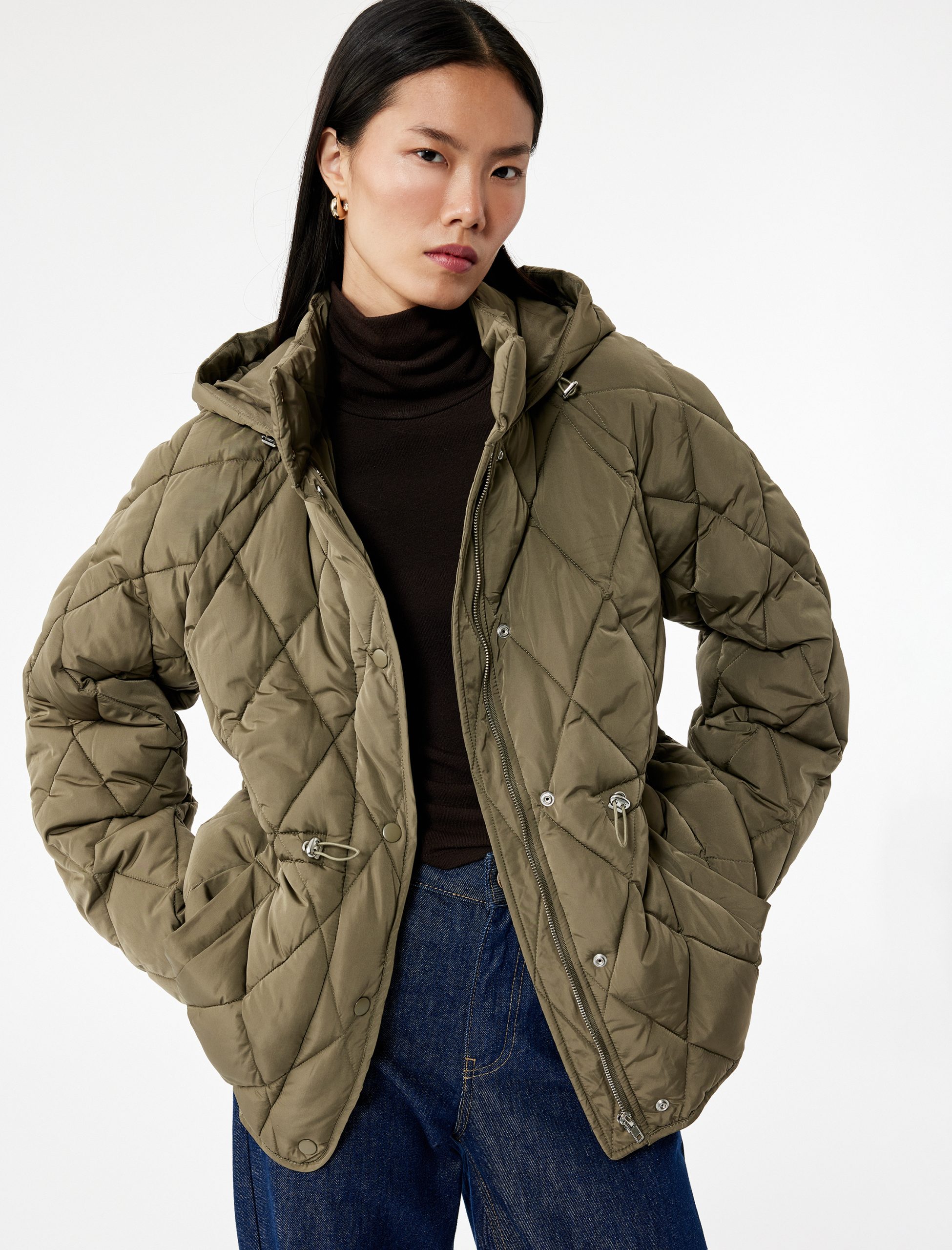 تتميز هذه السترة المبطنة بتصميمها العالي الجودة والعصري. توفر الأكمام الطويلة وغطاء الرأس حماية إضافية في الطقس البارد. يعكس تصميم رباط الخصر أسلوبك الشخصي مع تقديم الراحة. توفر الجيوب المبطنة بالقطب الاستخدام العملي. بطولها المريح وتصميمها الكلاسيكي، ستكون هذه السترة قطعة أساسية في خزانة ملابسك.