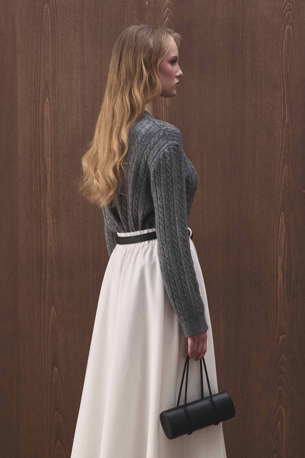 سترة متماسكة مضفرة ذات ياقة مستديرة وأزرار أمامية وقطع عادي.