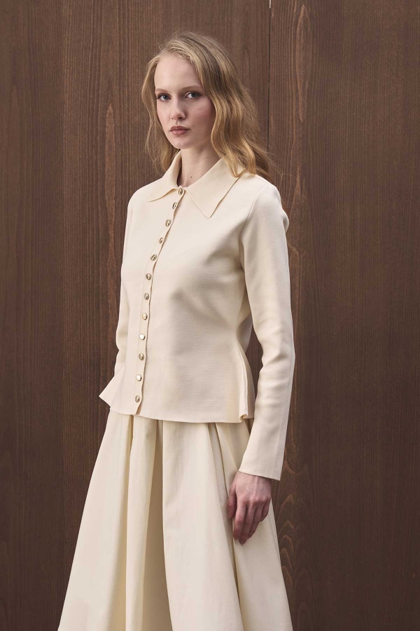 سترة محبوكة برقبة مستديرة وأزرار أمامية وملمس ناعم.