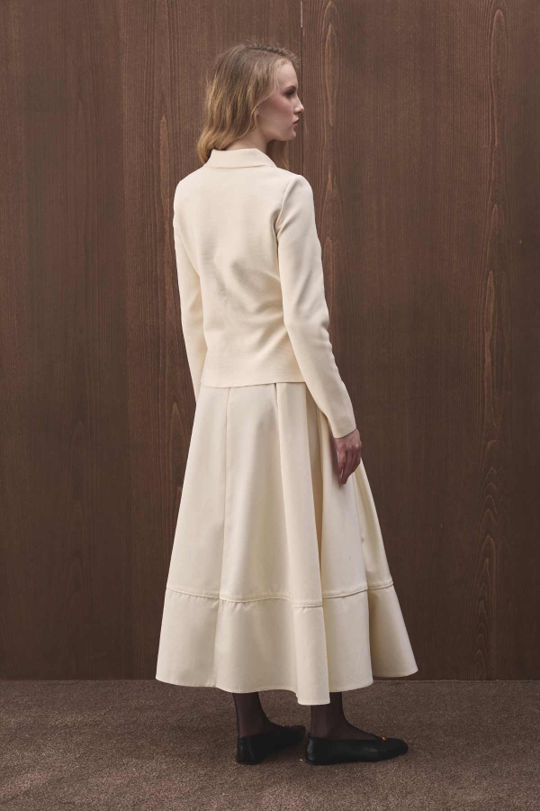 سترة بأزرار، بأغطية جيوب، بتفاصيل كتف، قصيرة وقص كامل من القماش الميرسيريز.