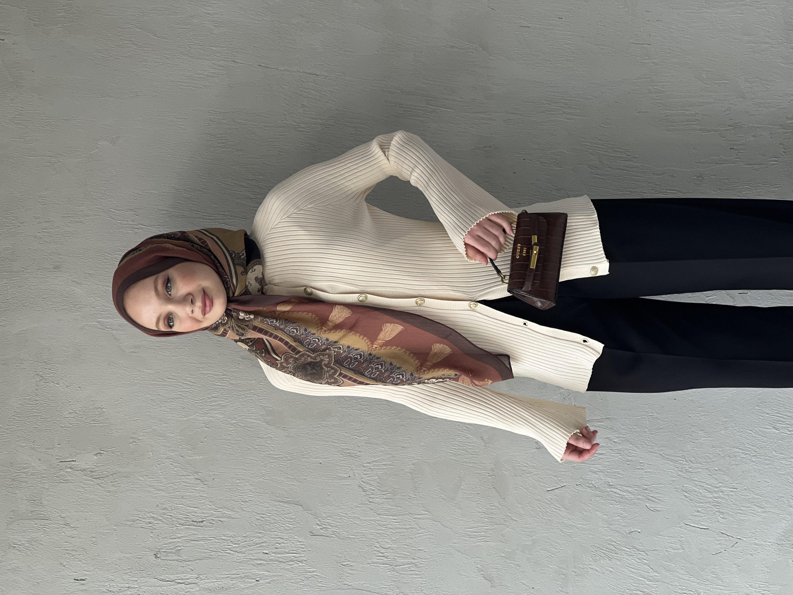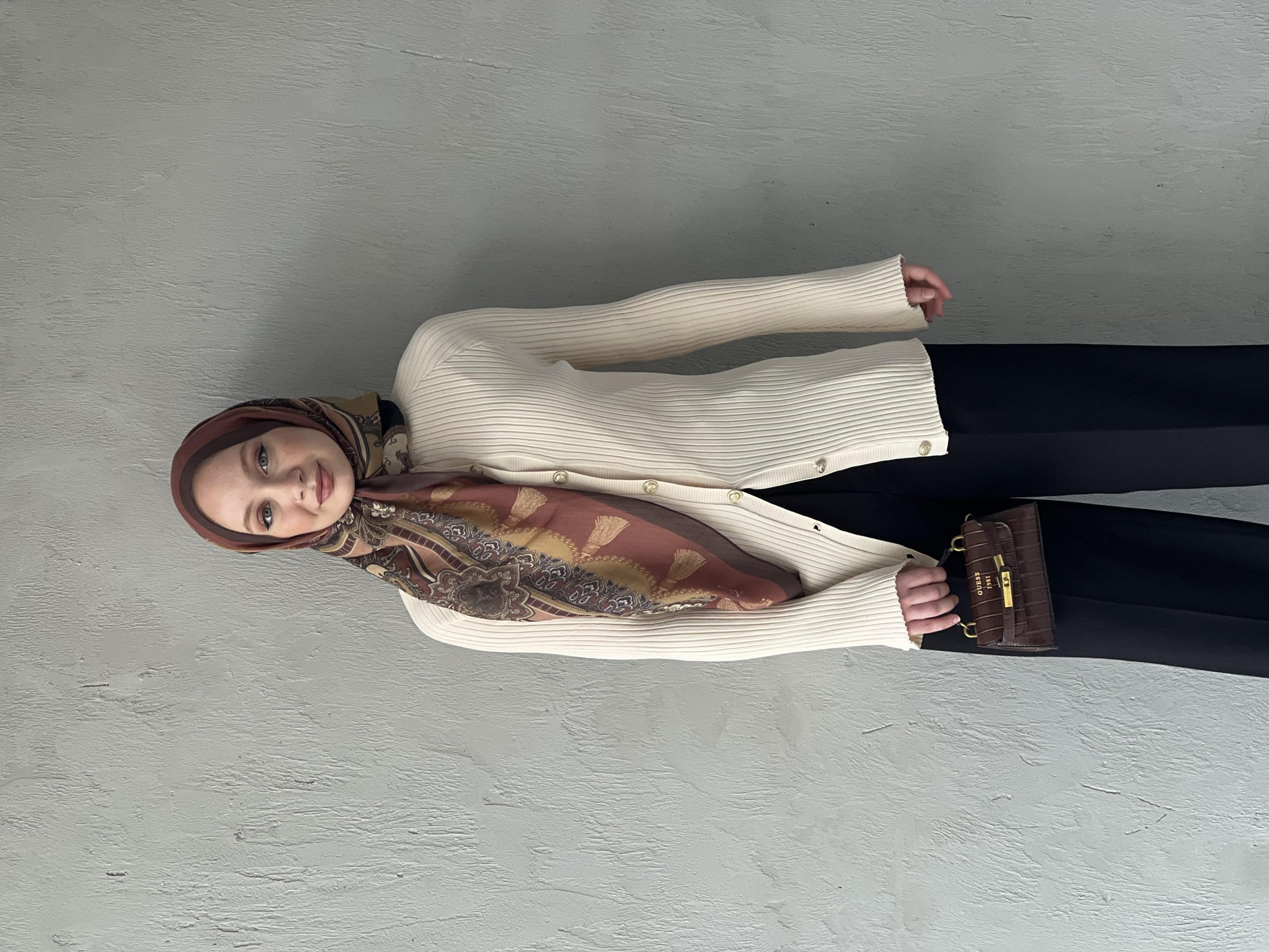 سترة محبوكة برقبة مستديرة وأزرار أمامية وملمس ناعم.