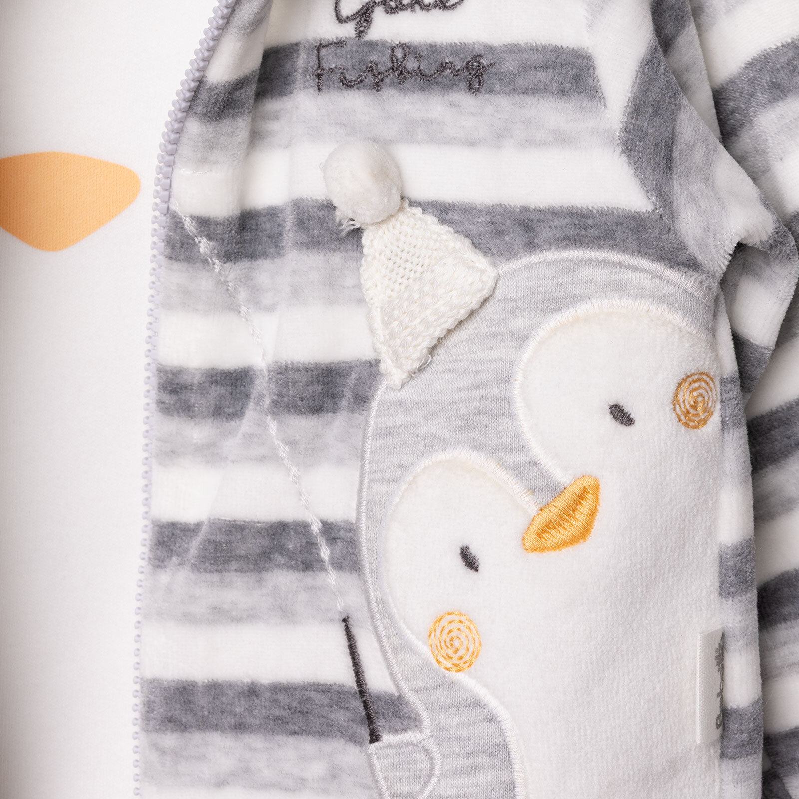 ست ببيتو للأولاد الرضع حديثي الولادة: سويشيرت-هودي-بنطلون بدون قدمين بسحاب، طبعة حيوانات البطريق السعيد، ياقة مستديرة، أكمام طويلة، أرجل طويلة