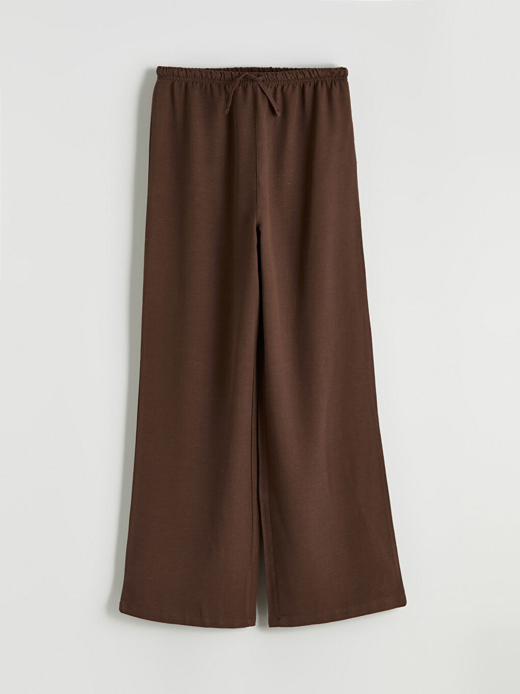 Coffee-Colored Elastic Waist Wide Leg Pants