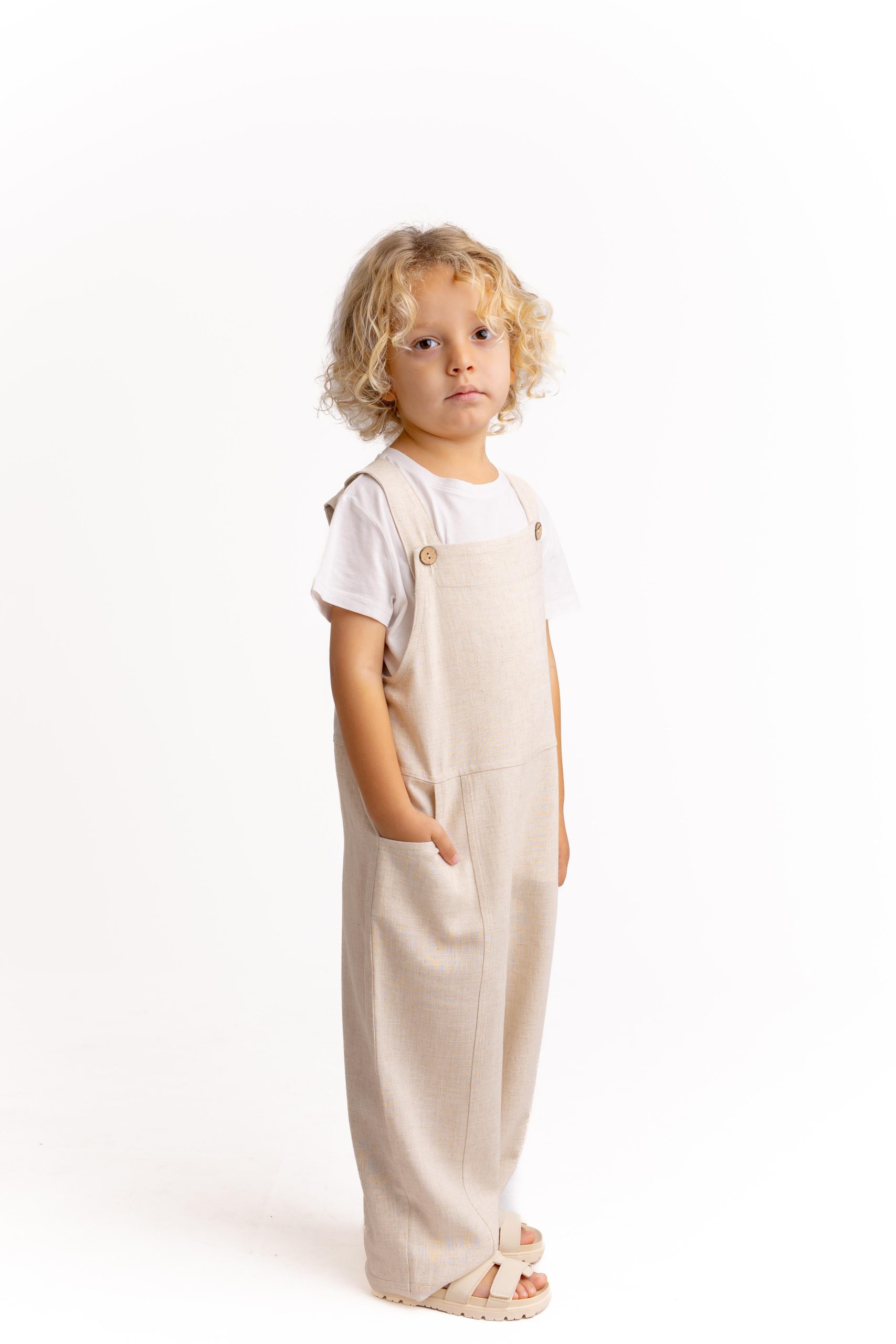 سروال واسع الساق من الكتان للأطفال ٢-٧ سنوات باللون الطبيعي