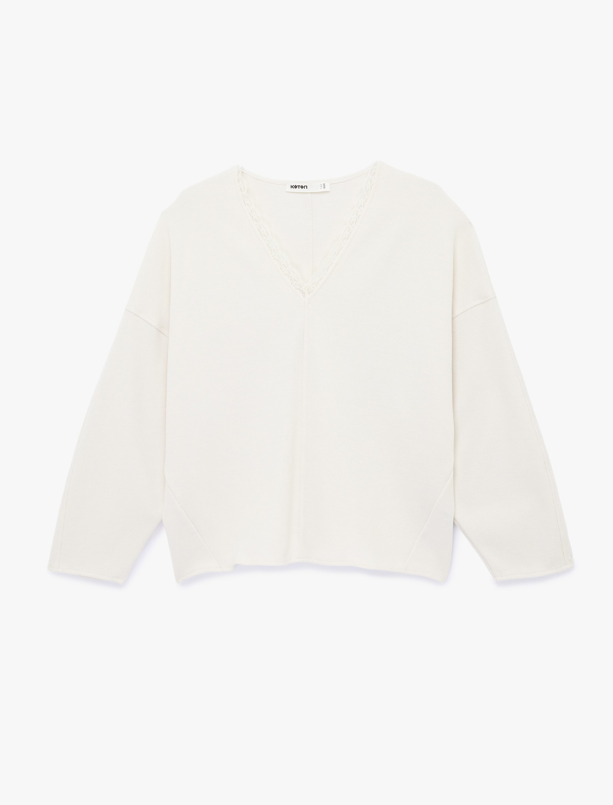 سويتشيرت طويل الأكمام بقصة V وبتفاصيل دانتيل
