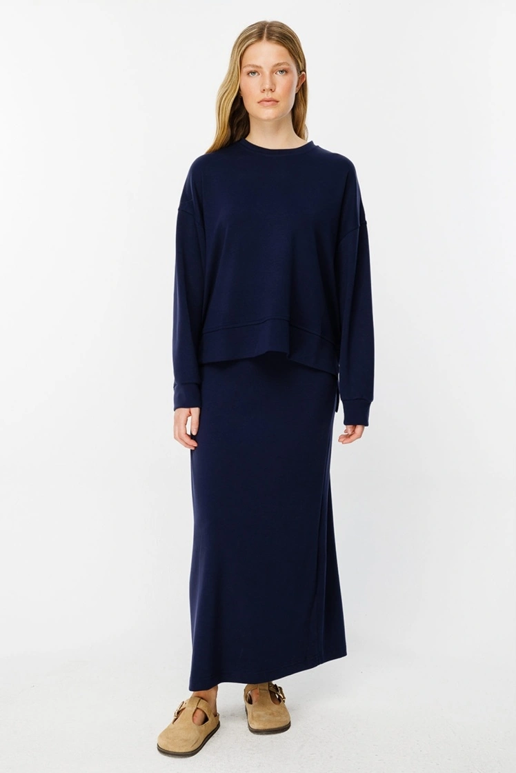 سويتشيرت مضغوط أزرق بحري بشقوق جانبية