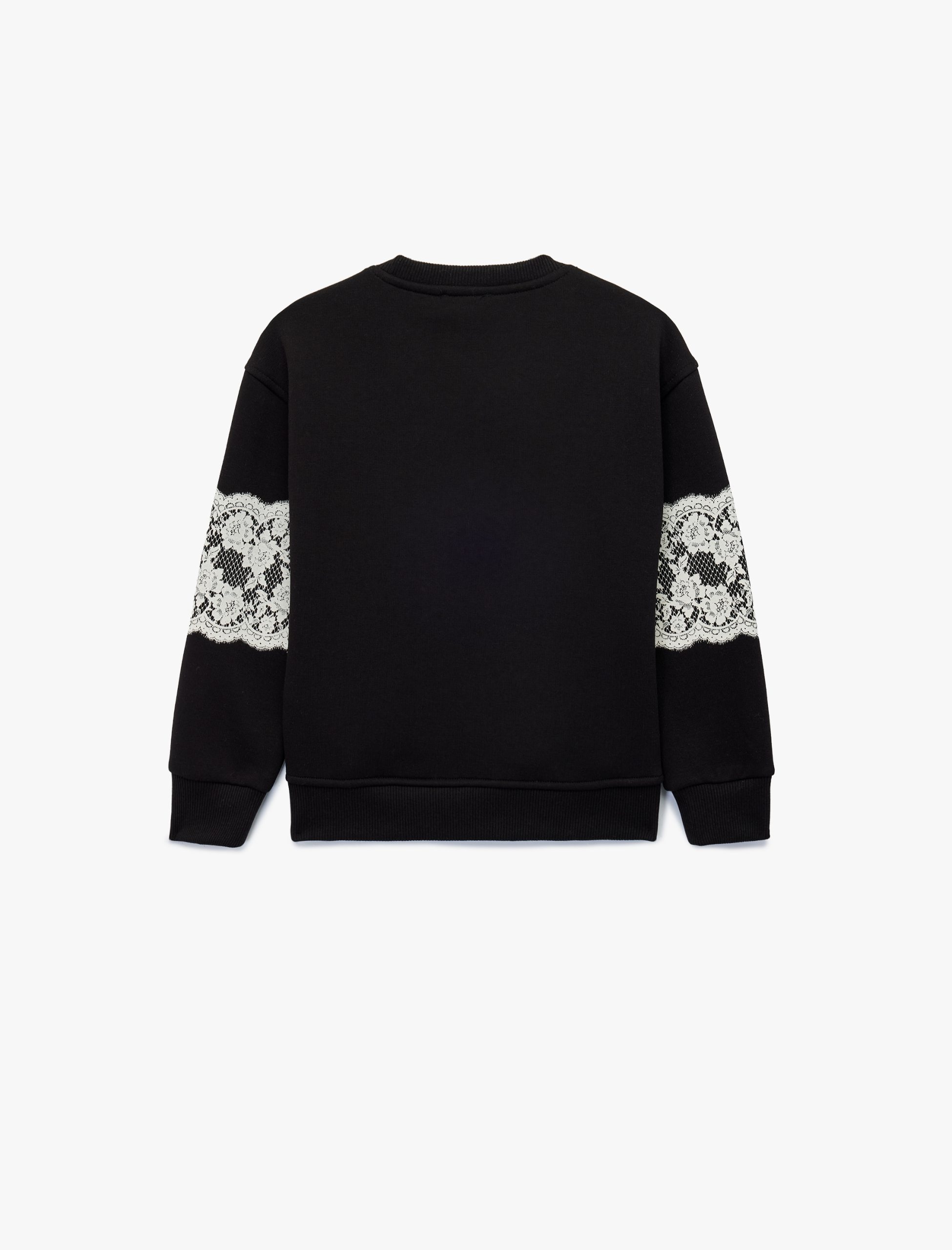 سويشرت طويل الأكمام بقلنسوة مطرز للفتيات