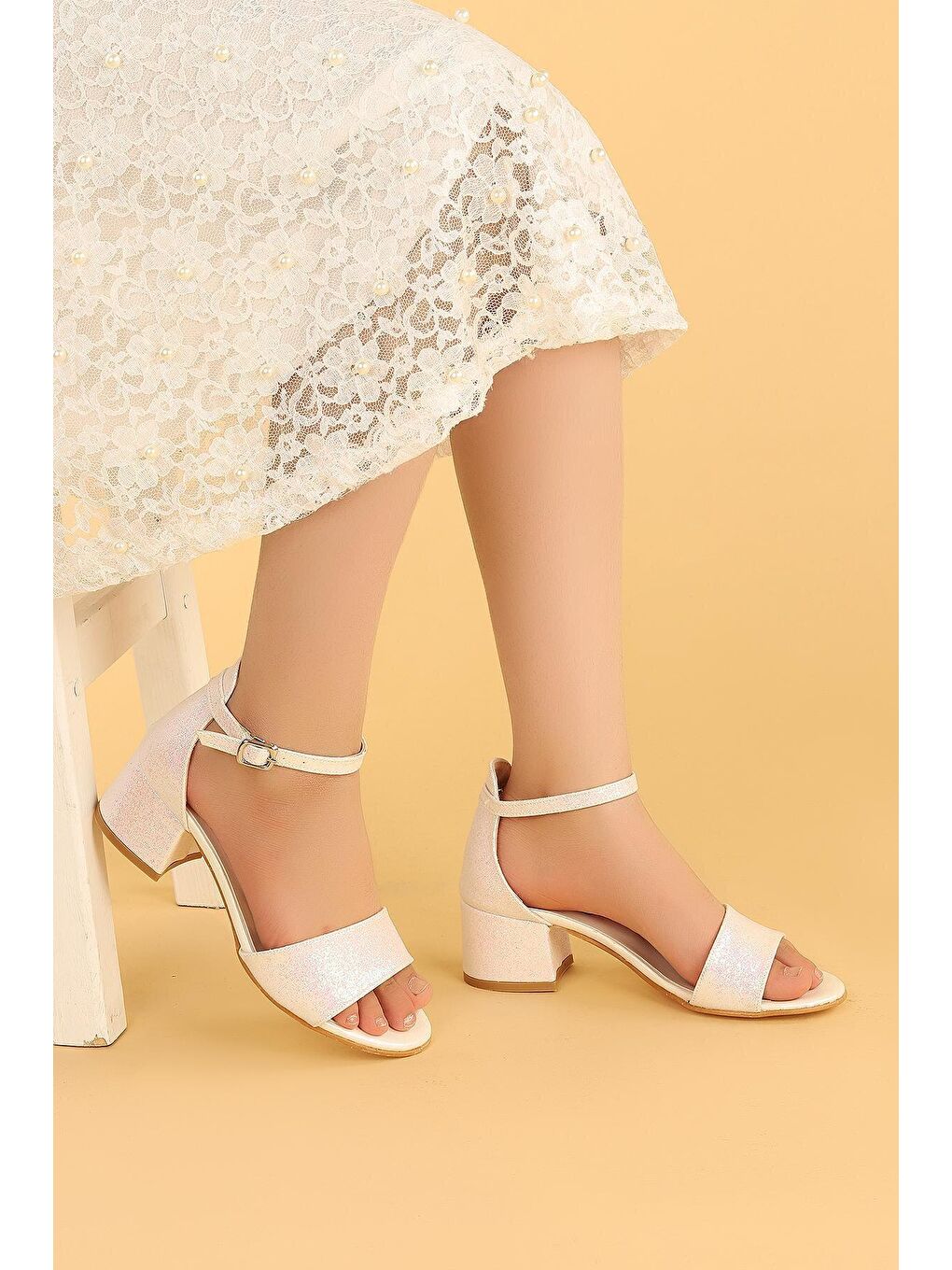 صندل أبيض أليكسا للفتيات بكعب 4 سم للأوقات اليومية والمناسبات