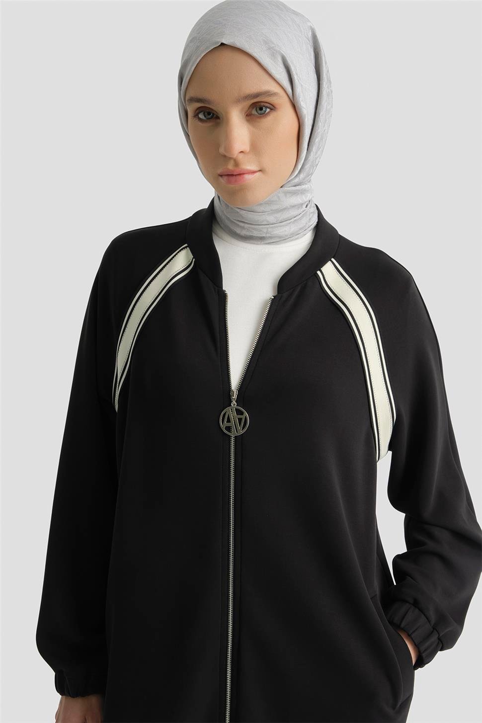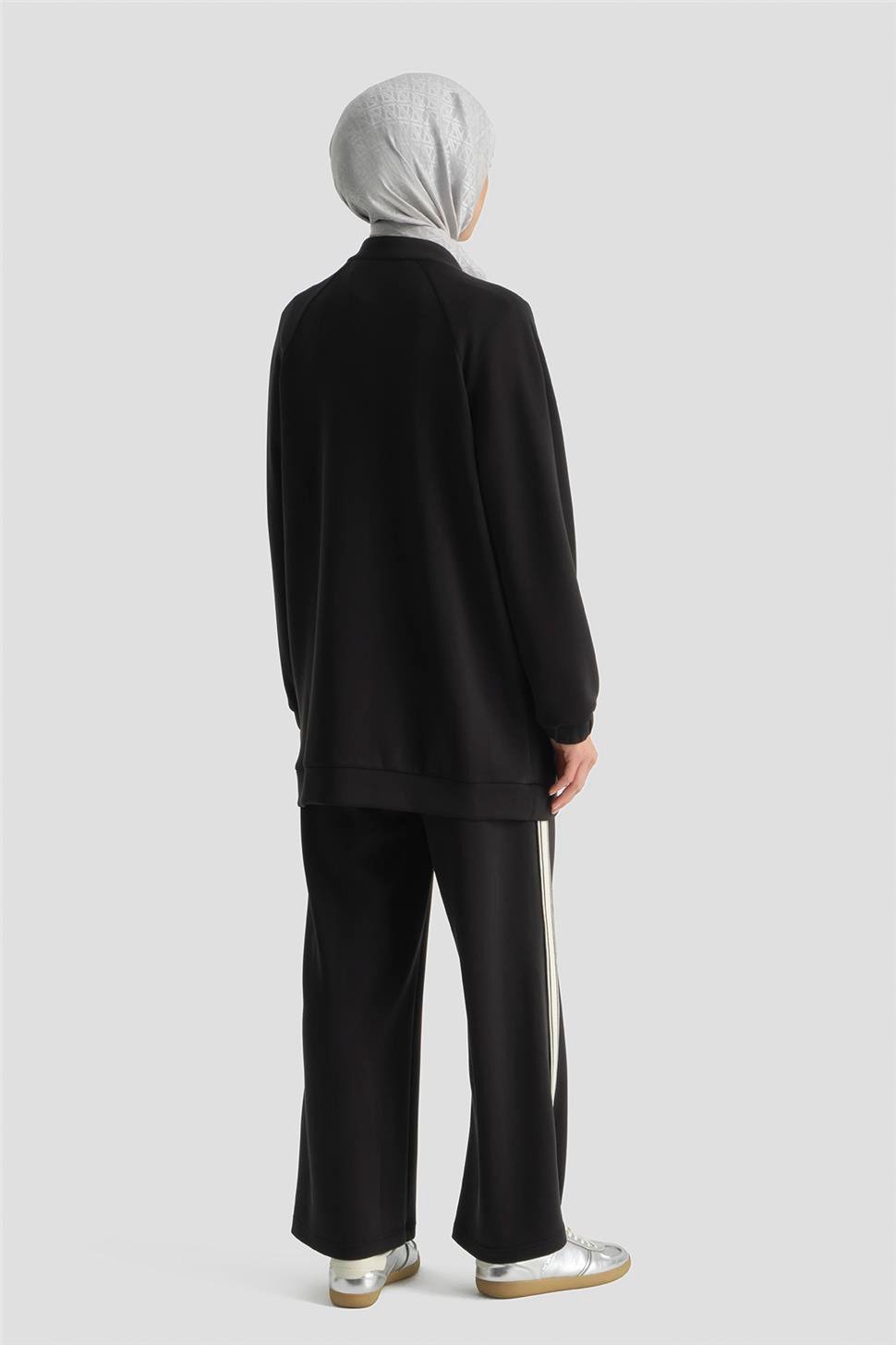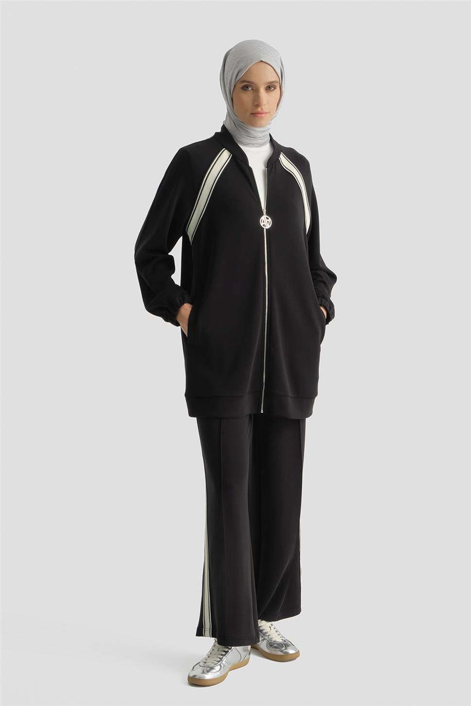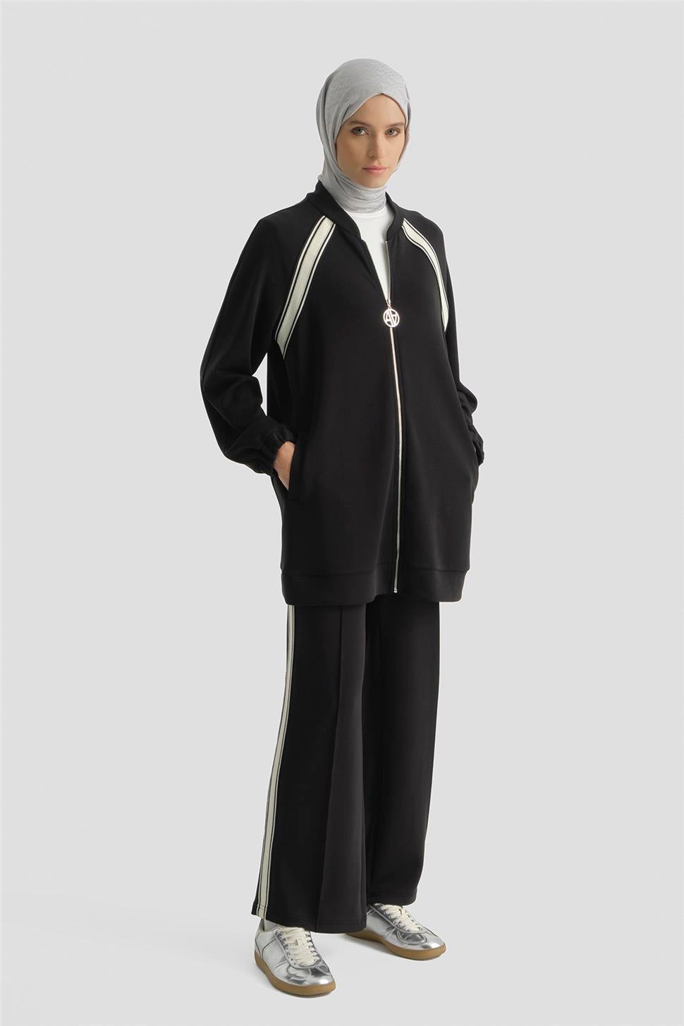 يقدم راحة أنيقة بقوامه الناعم من قماش المودال وتفاصيل الريبان. التصميم المتدفق يضمن الراحة طوال اليوم، بينما يضفي تصميم القميص العلوي بسحاب وتفاصيل الشرائط المتناقضة ديناميكية عصرية للطقم. بقصته المتوازنة، يمنح هذا الطقم أناقة سهلة—خيار خالد لمن لا يرغبون في التنازل عن الأناقة في إيقاع المدينة.