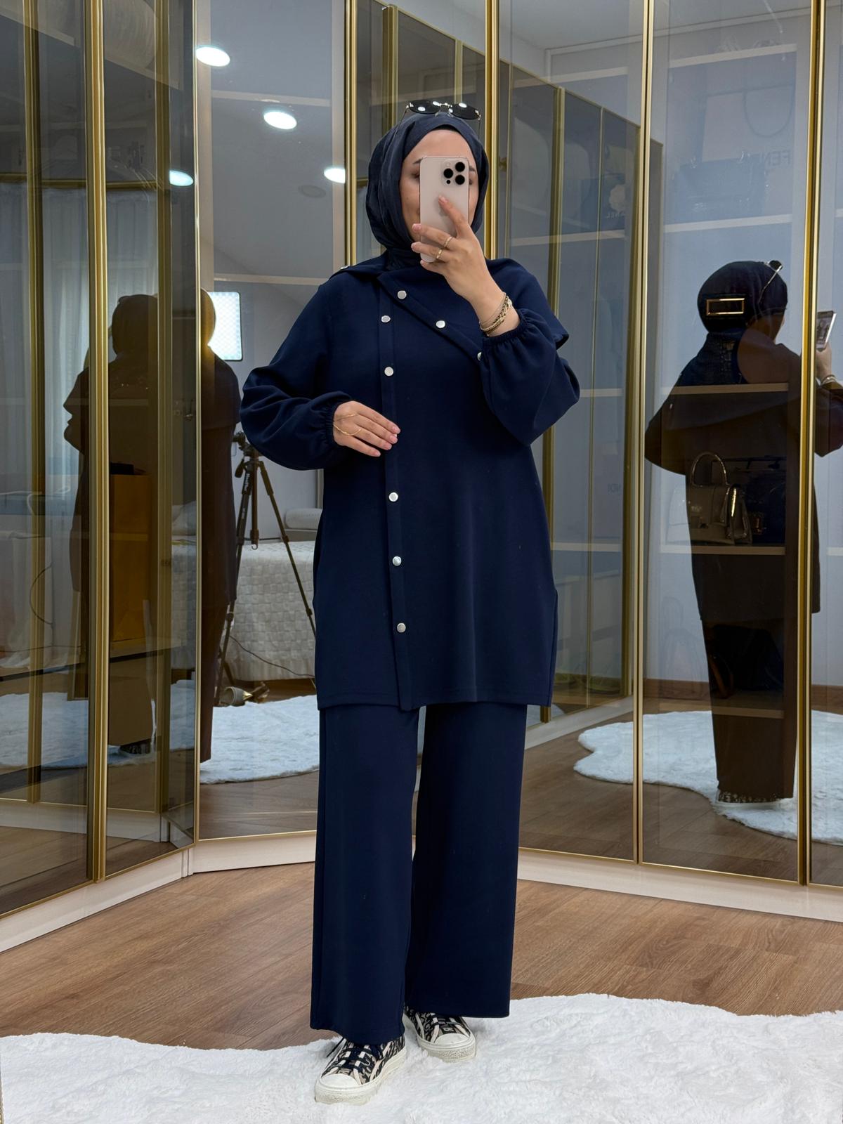 الوسوم: asymmetric, metal button, ملابس محتشمة, أزرق كحلي