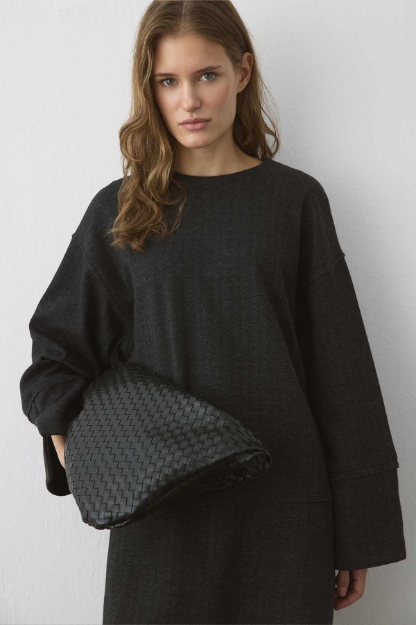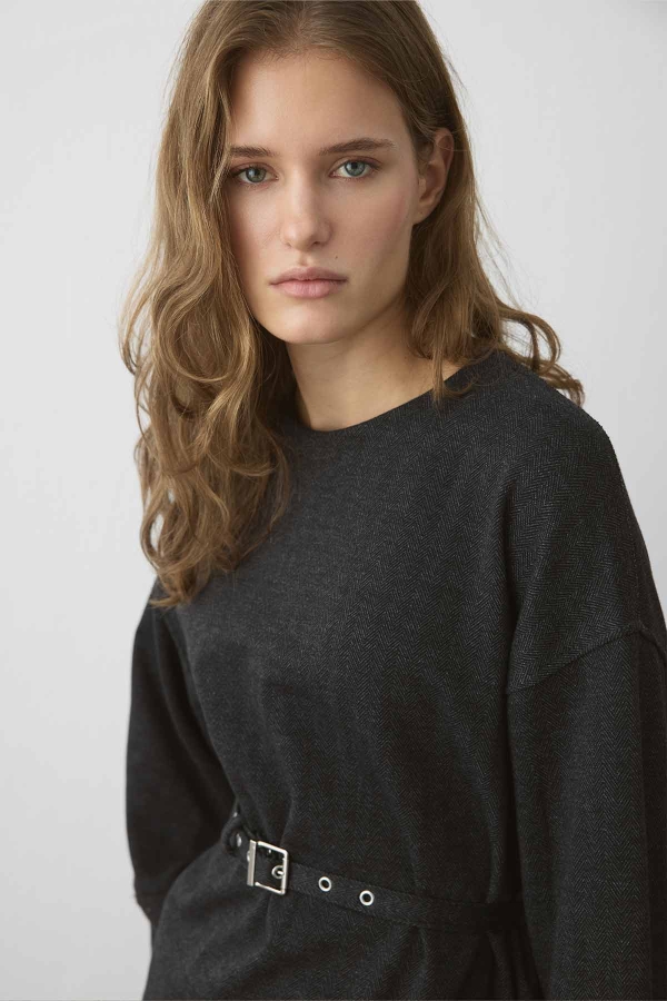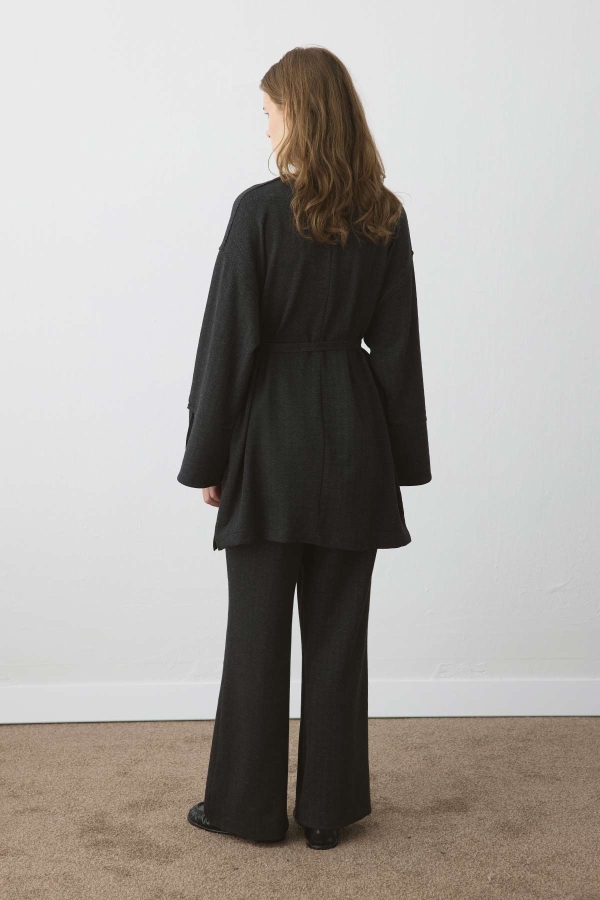 مميزات الطقم الأسود ببنطلون مزود بتفصيل الحزام: البلوزة مزودة بحزام بتفصيل عيون متحركة، أكمام عريضة، بدون طية صدر، قصة مريحة، مع شق جانبي صغير، أكتاف منخفضة، وإغلاق بسحار من الخلف. البنطلون بقصة مستقيمة، مزود بتفصيل الجيوب، خصر مطاطي، وتفصيل حبل داخلي، طقم بنطلون غير مبطّن. محتوى القماش وتعليمات الغسيل: 70% قطن، 20% فيسكوز، 10% لايكرا. اغسلي في الغسالة على 30 درجة مئوية بدورة قصيرة، غسيل لطيف. مقاس المنتج: S-M مقاسات العارضة: