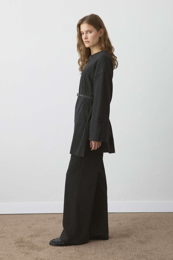 طقم أسود ببنطلون مزود بتفصيل الحزام