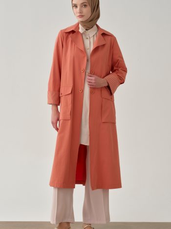 معطف خندق بطبعات مخططة وجيوب – برتقالي
