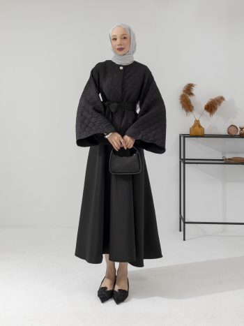 يتميز هذا المعطف الأسود بأناقته البسيطة، حيث يعرض نسيجه المُبطن وتصميمه المزود بحزام ليعطي مظهراً عصرياً. توفر زخارف الفرو على