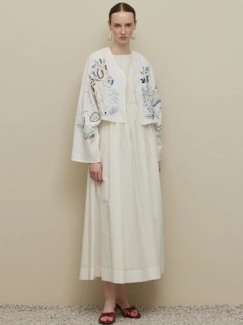 طقم جاكيت كيمونو مطرز باللون الأبيض
