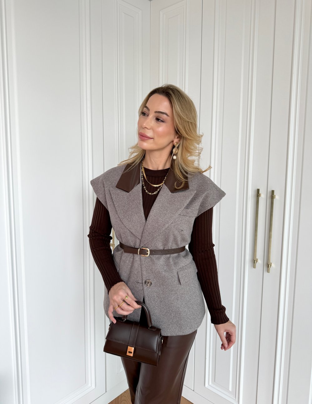السترة مزودة بتفاصيل بطانة وتفاصيل حزام.