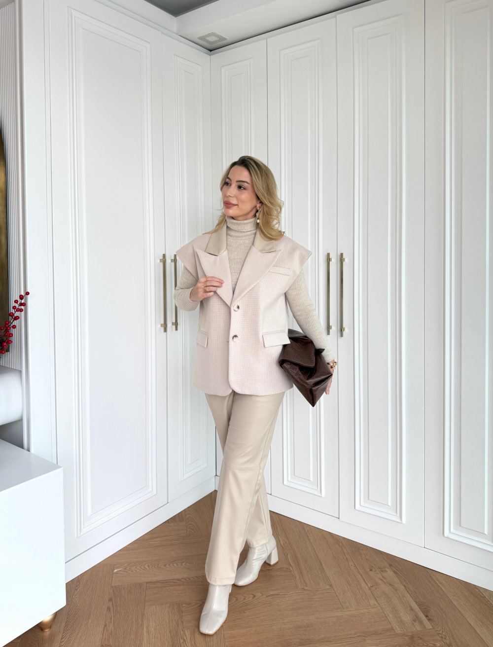 طقم الصدرية المزدوج هذا المبهر يتميز بتفاصيل أنيقة ويوفر خيارات تنسيق متعددة الاستخدامات من المناسبات الخاصة إلى الأناقة اليومية. خيار مثالي للسيدات اللاتي يرغبن في الظهور بأناقة مع الشعور بالراحة. باهتمامه الدقيق بالتفاصيل وتصميمه المتطور، أصبح الخيار المثالي لمن يبحثن عن الأناقة في أي مكان. هذا الطقم المتعدد الاستخدامات ينتقل بسهولة من النهار إلى الليل، مما يجعله قطعة أساسية في خزانة الملابس.
