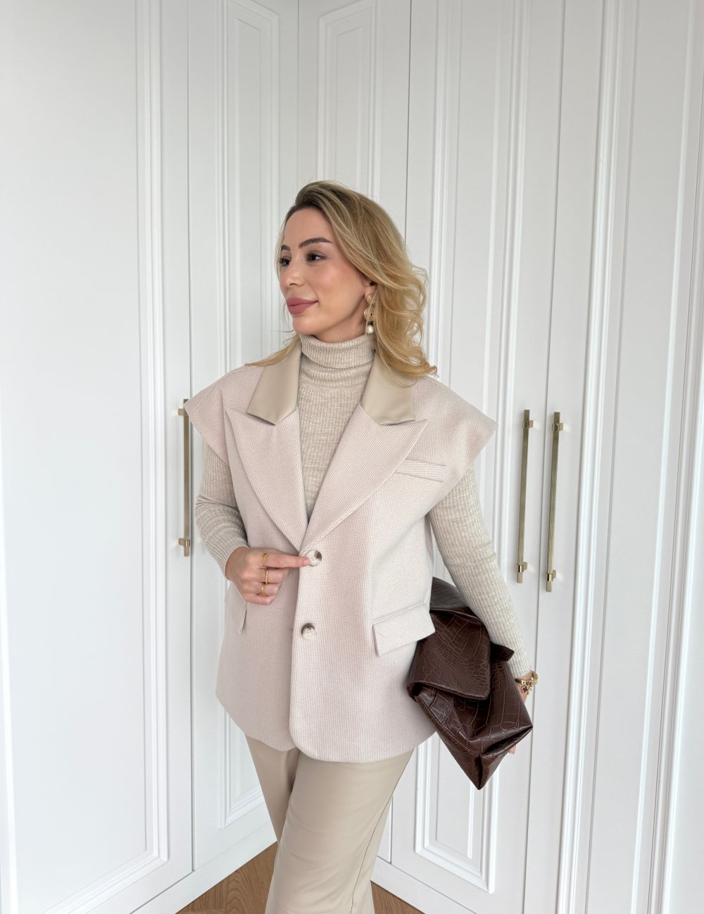 الصدرية تحتوي على تفاصيل تصميمية على شكل جيوب.