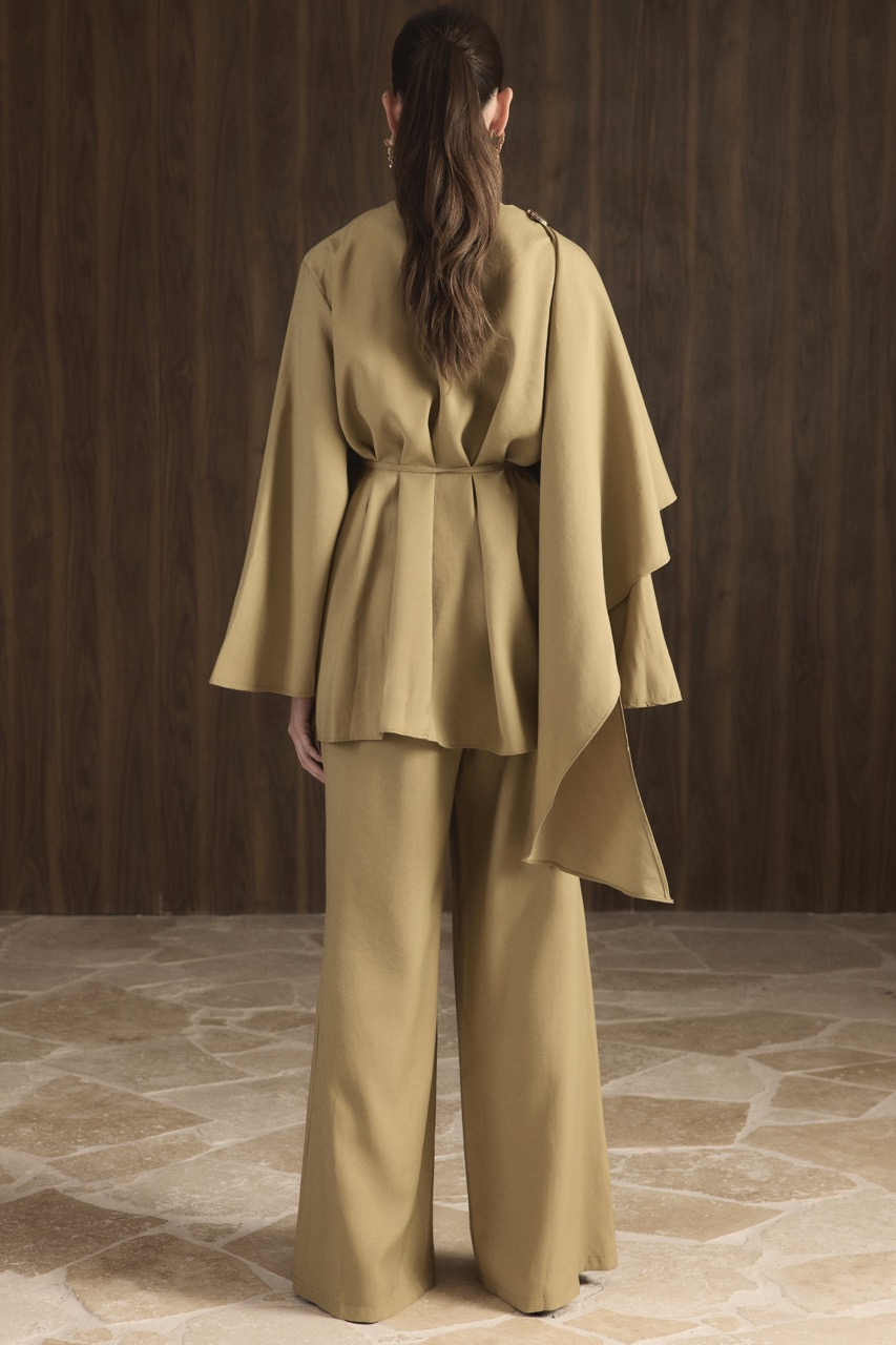 ارتقِ بملابسك مع طقم أورن الأنيق مع وشاح بلون زيتوني راقي. مثالي لإضافة لمسة من الأناقة المكررة لأي مناسبة، يجمع هذا الطقم المتعدد الاستخدامات بين الراحة والموضة الخالدة.