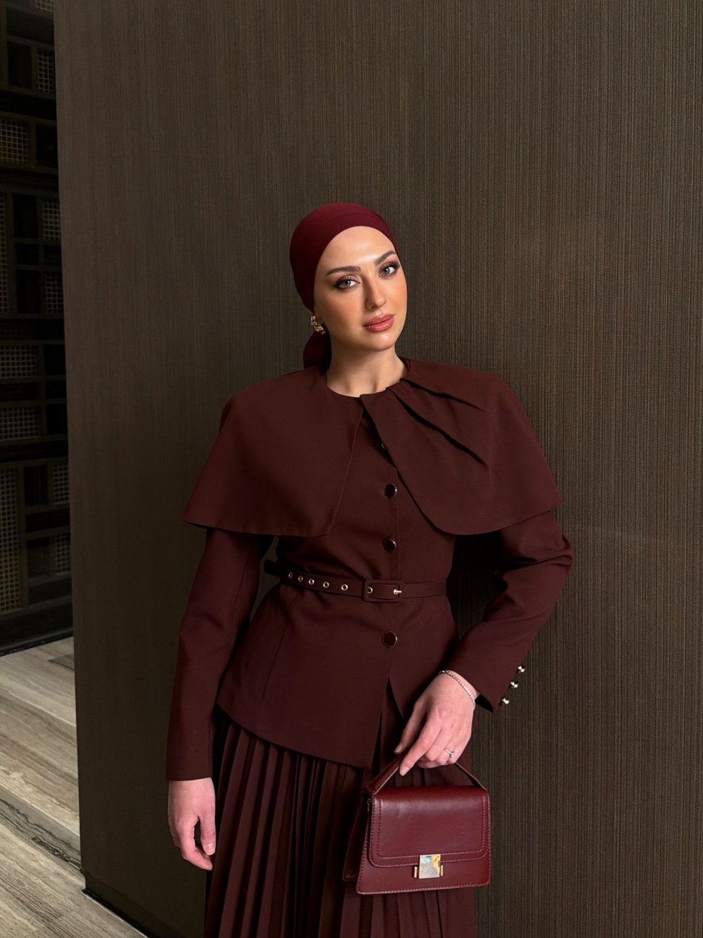 طقم أيزا بالتنورة باللون العنابي