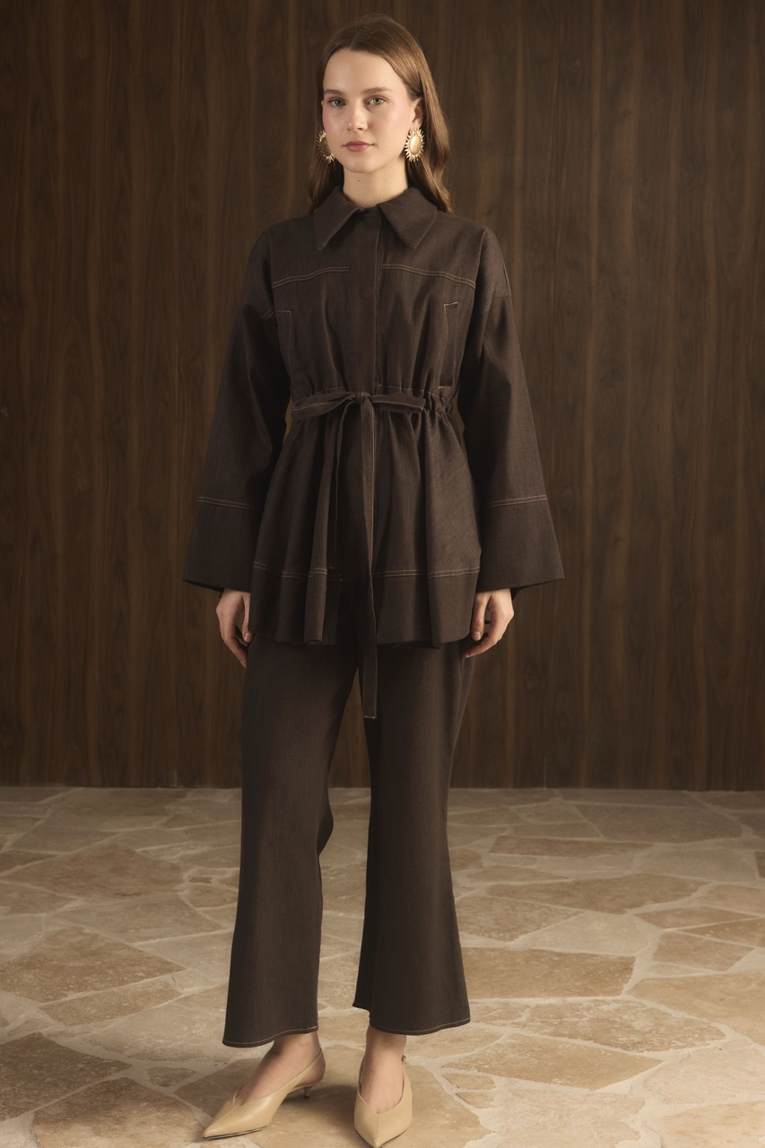 طقم الجينز جيما بتفاصيل الخصر – اللون البني
