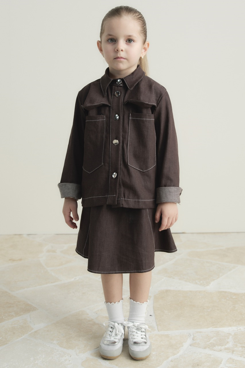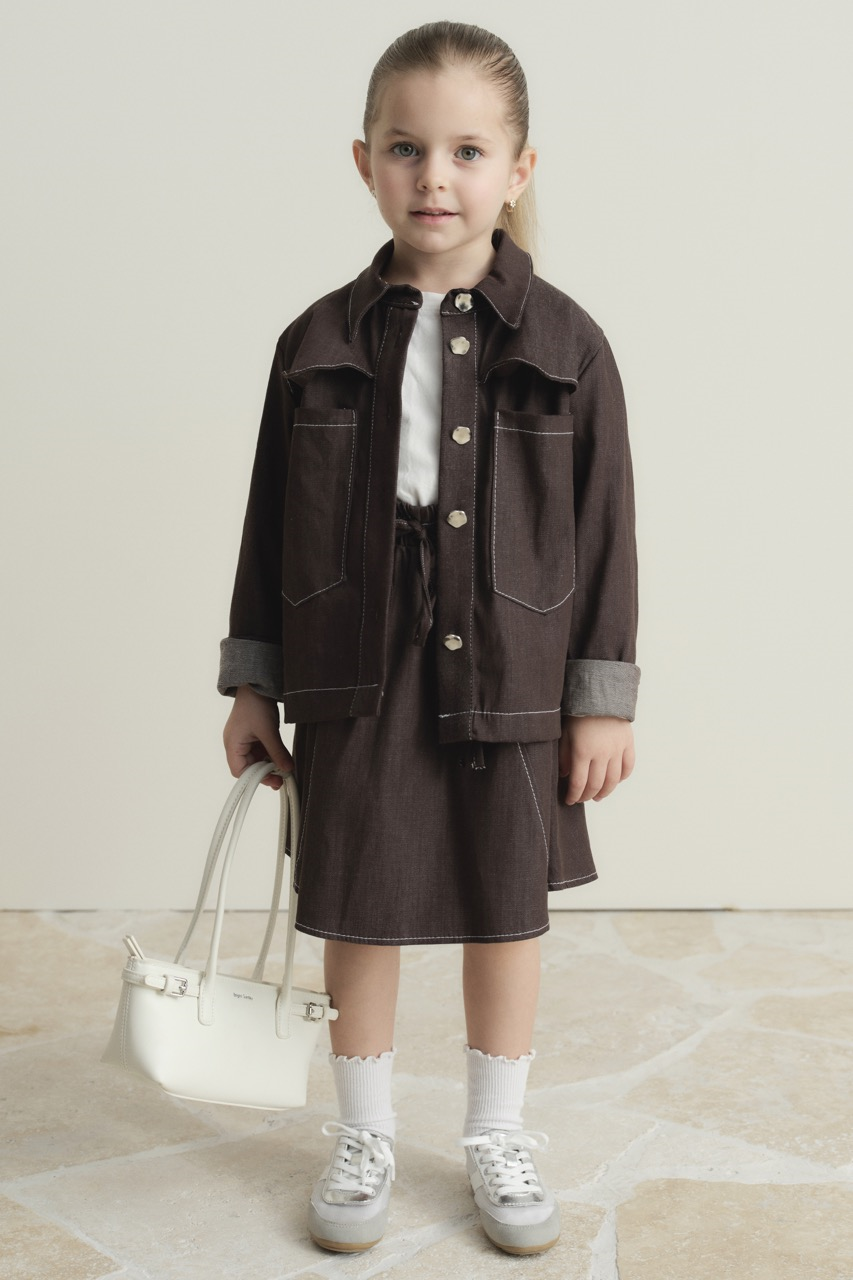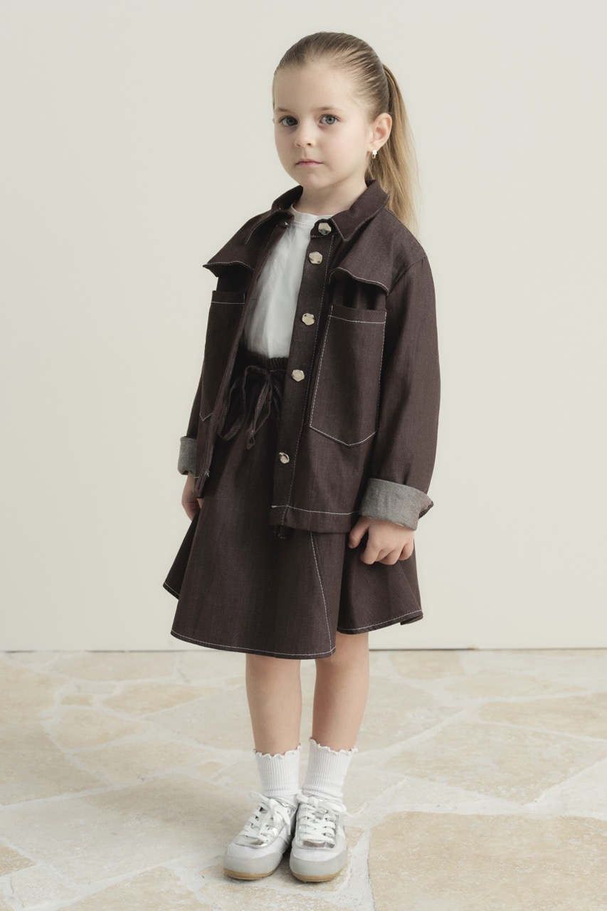 طقم الدنيم ذو الجيب المزدوج – اللون البني