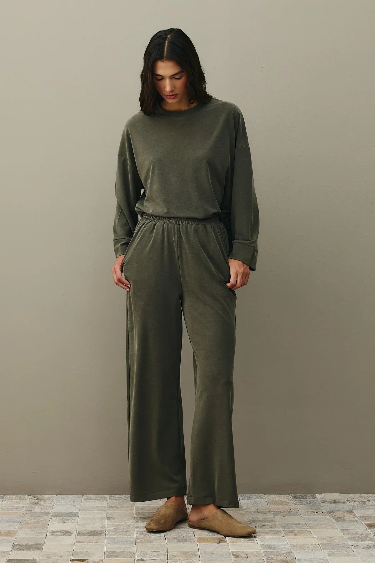 طقم بالازو تنسل مودال بلون أخضر طحلبي