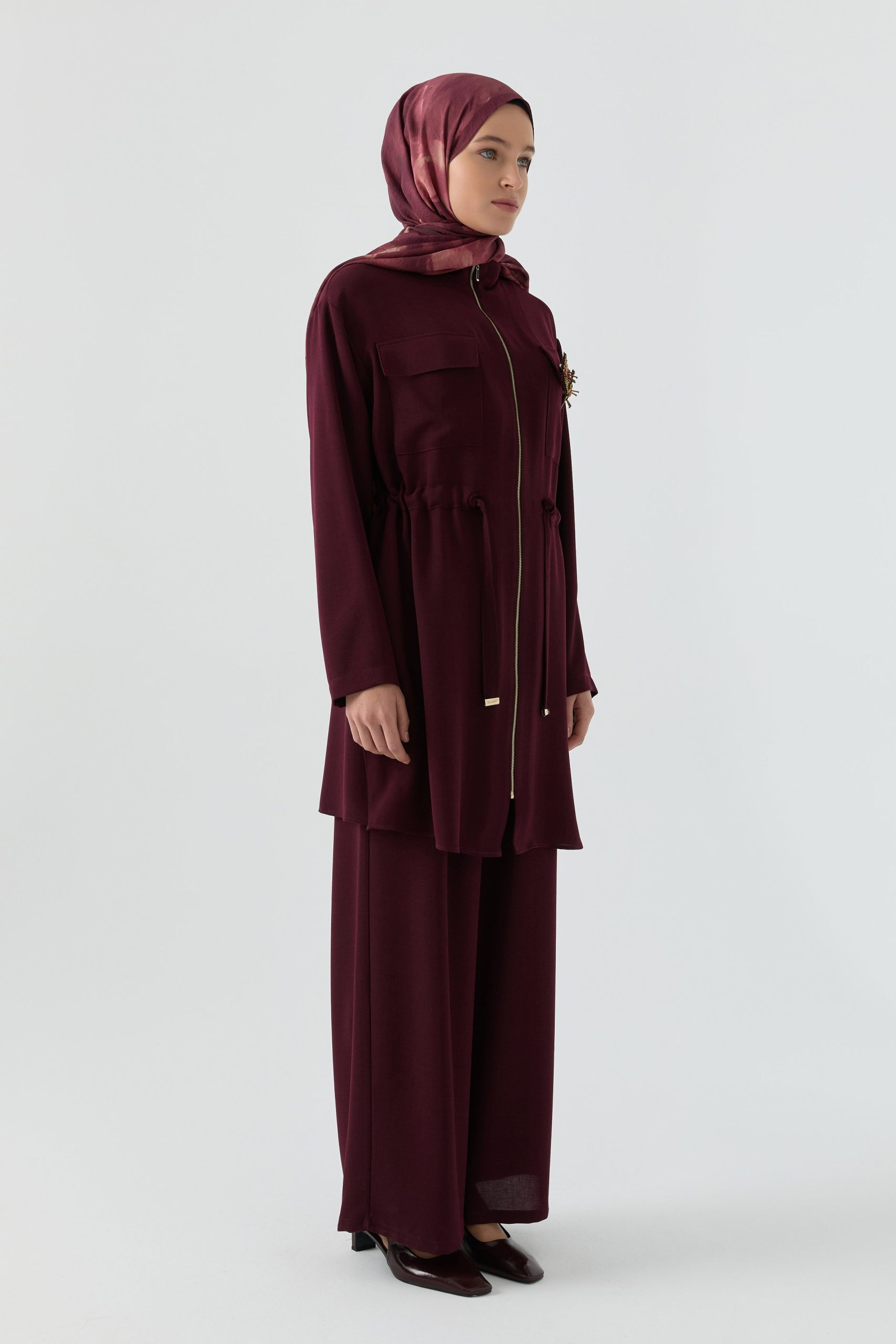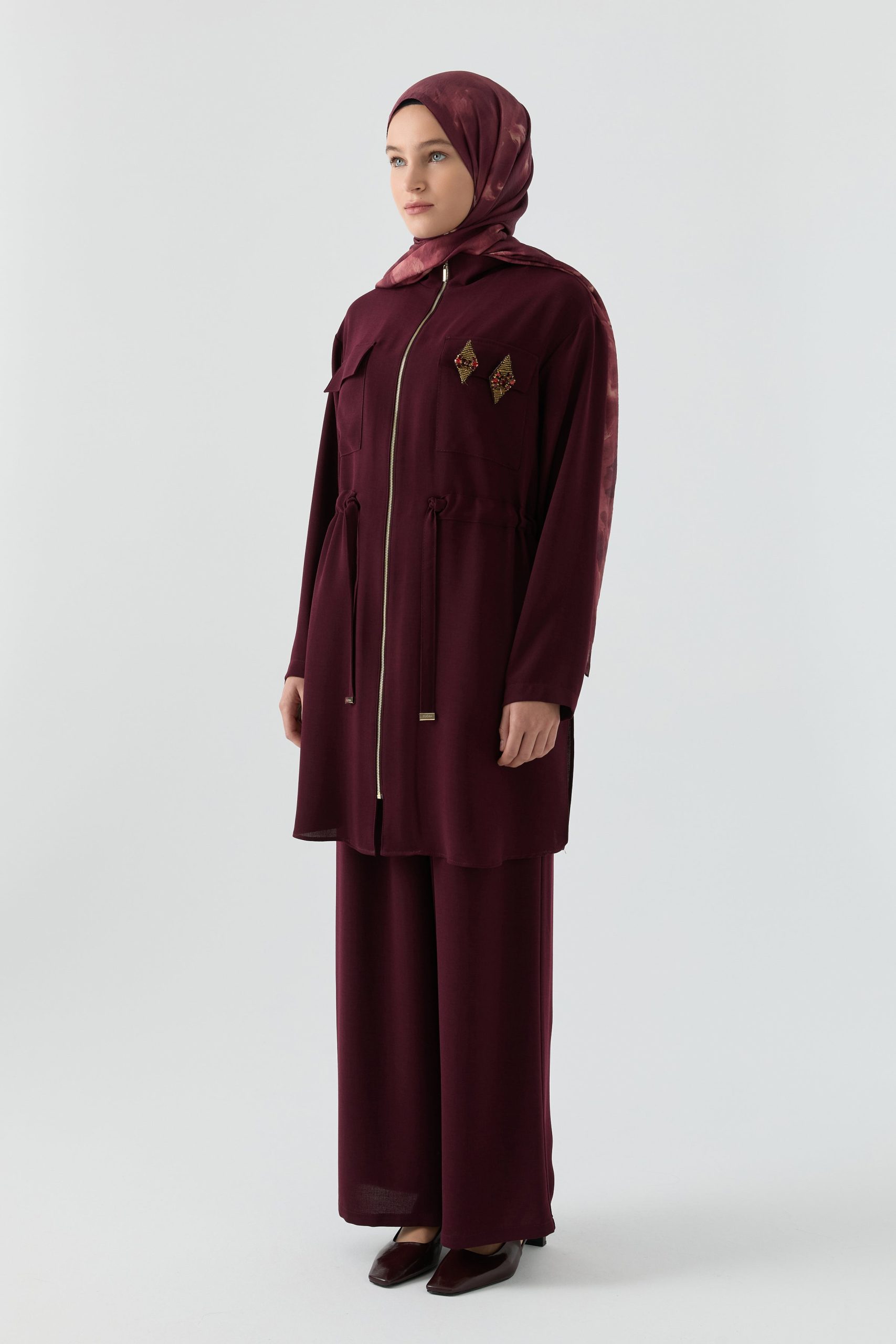 طقم بتفاصيل جيوب التطريز – لون بورغوندي
