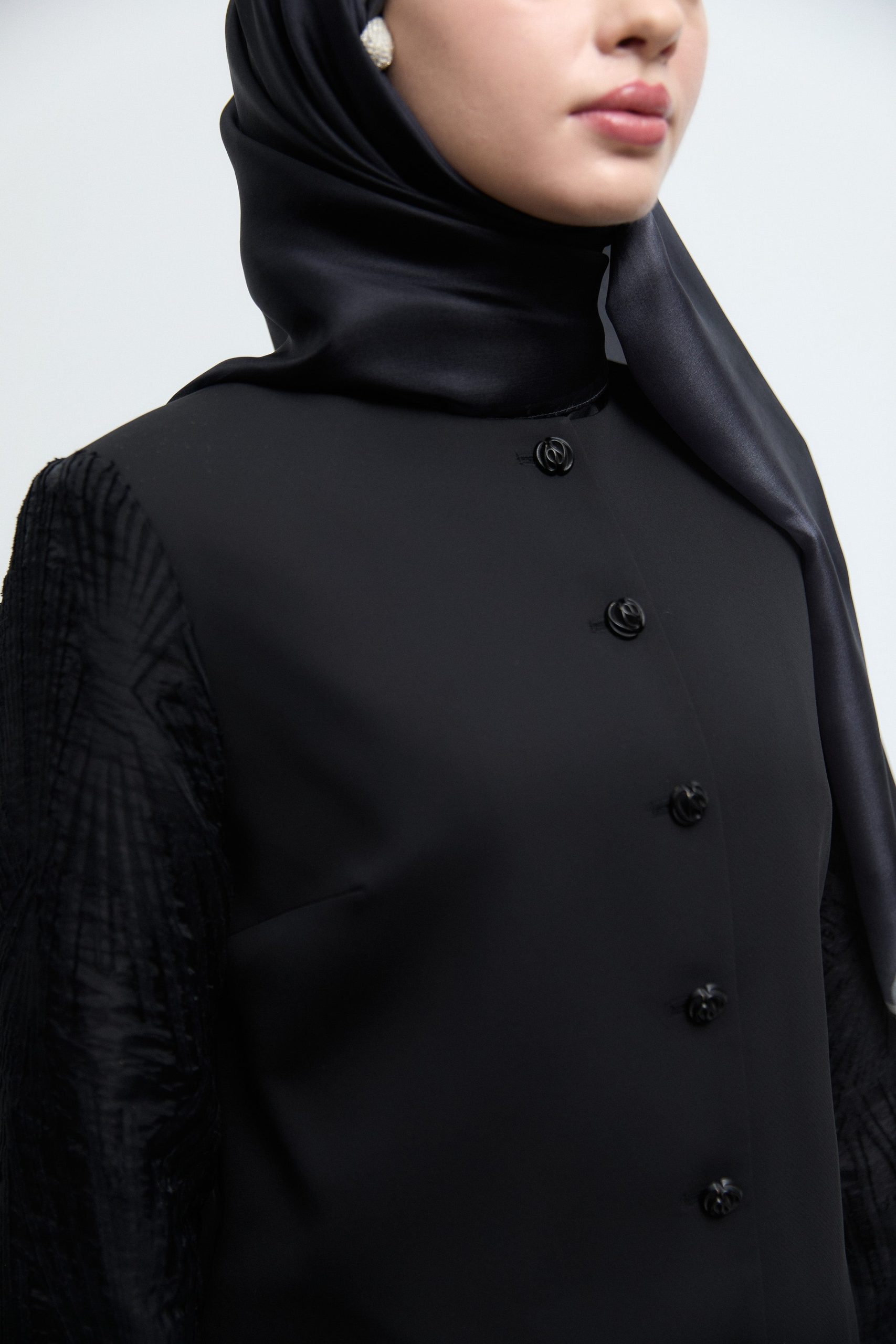 يتميز طقم الأزرار الأمامية بتصميمه الراقي وقوامه المتوازن، مما يجعله خياراً مميزاً للتركيبات الأنيقة والجريئة.