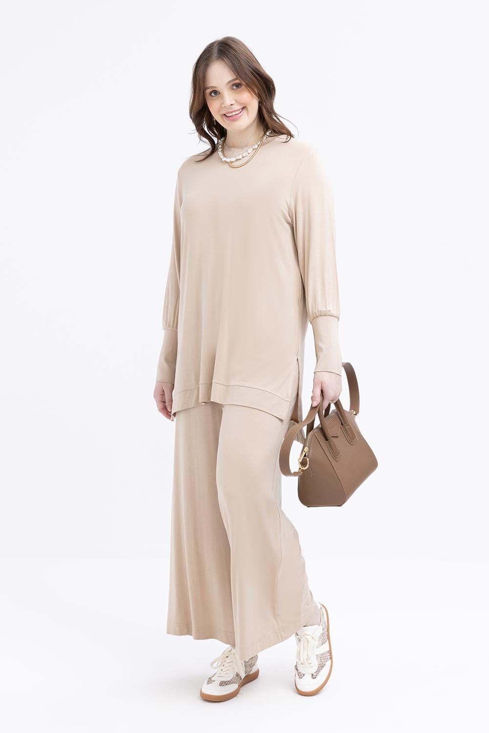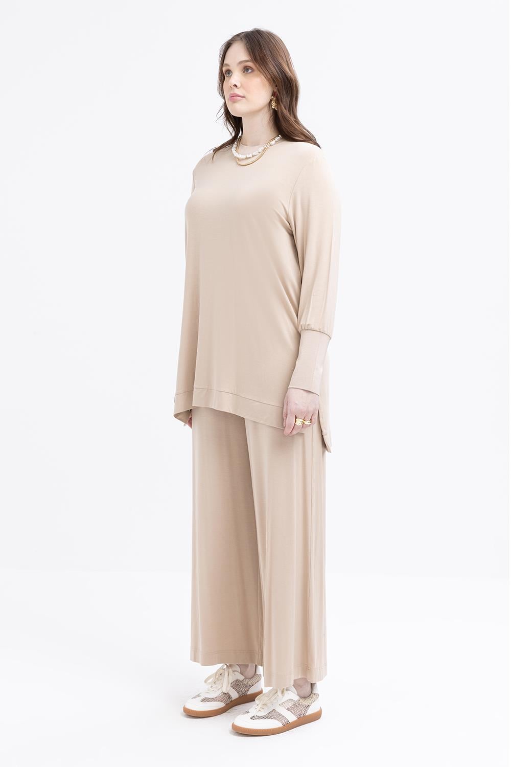 طقم بنطلون باللون البيج للمقاسات الكبيرة