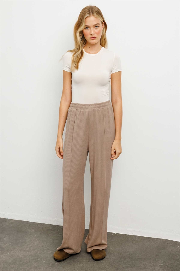 طقم بنطلون بلون المنك مع سترة بوبلين محبوكة بتفاصيل أنيقة