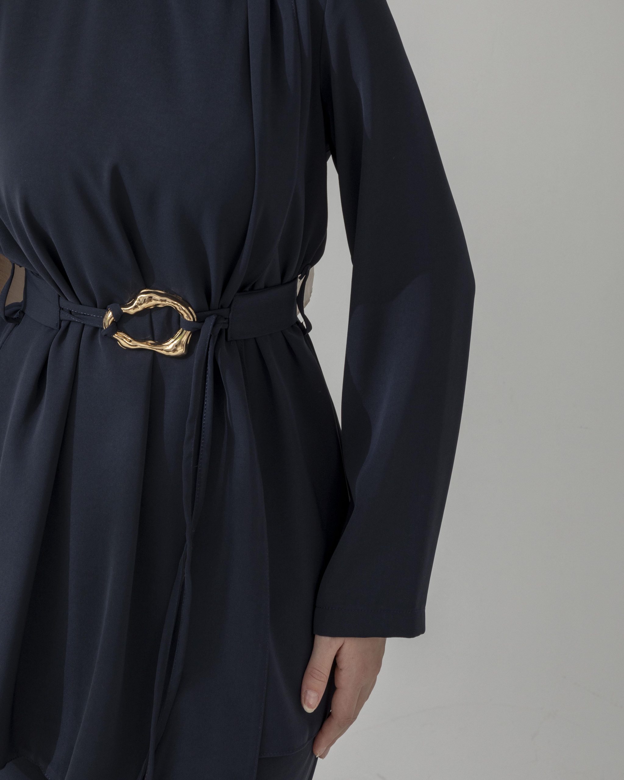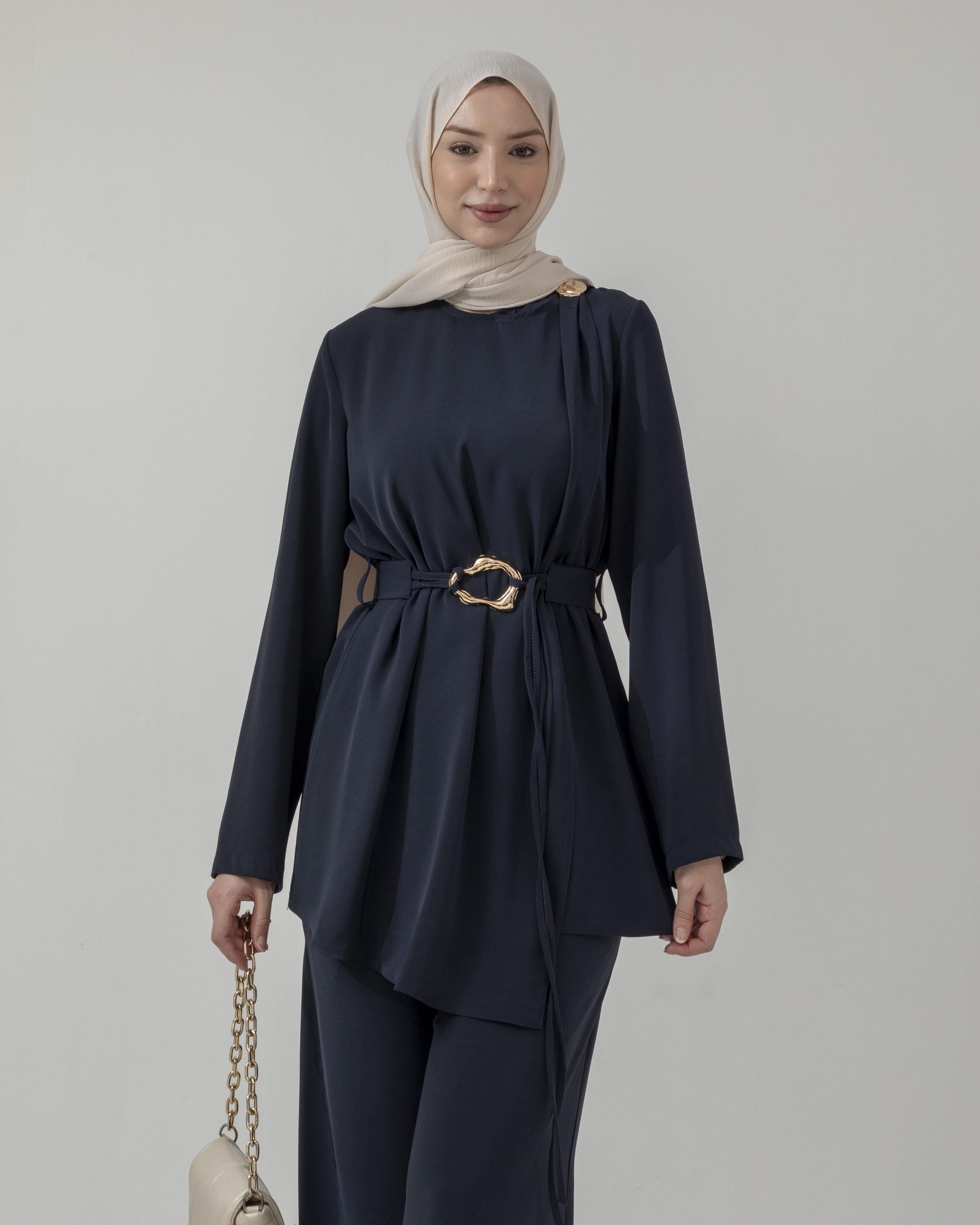 طقم بنطلون تونيك أزرق بحري مع إكسسوارات