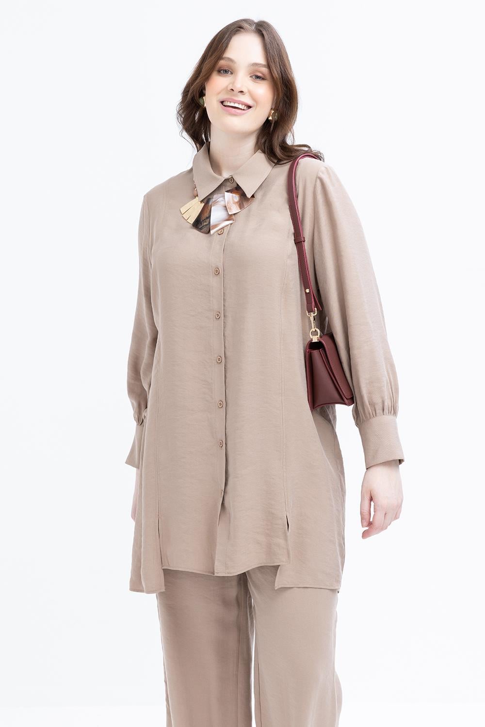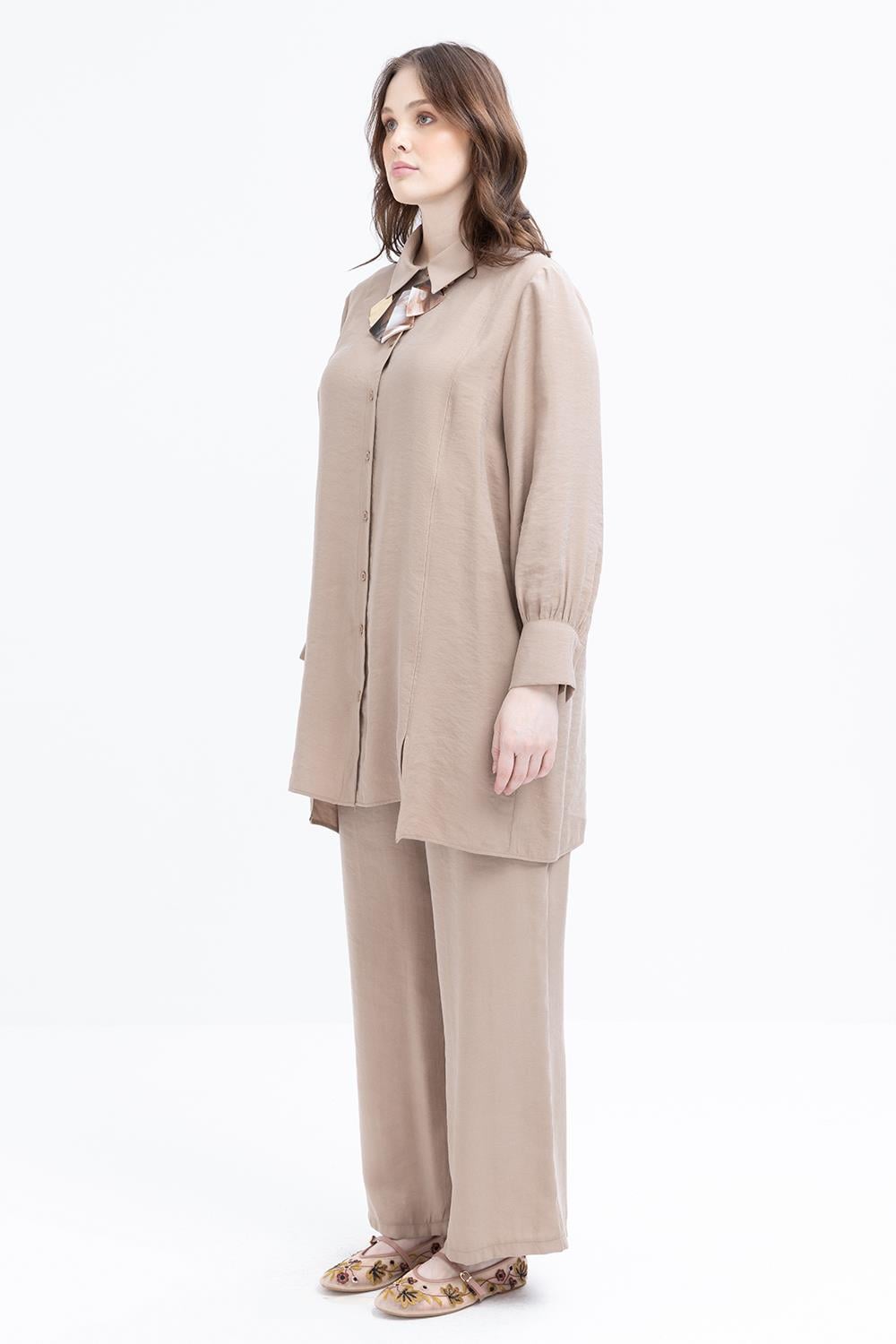 يتميز هذا الطقم بتناغم خطوط التونيك والبنطلون، حيث تضيف تفاصيل جيوب التطريز لمسة راقية للتصميم البسيط. قماشه المتدفق يضمن الراحة طوال اليوم، بينما تضيف خطوطه العصرية لمسة قوية وأنيقة للستايل الحضري.