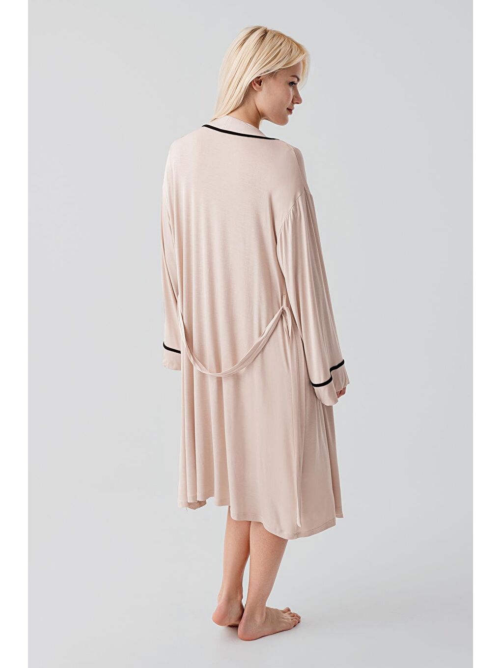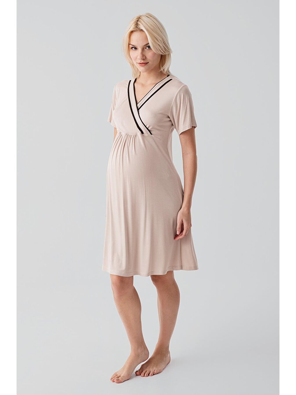 طقم بيجامة حمام ورداء للأمومة بلون البيج بأكمام قصيرة وفتحة للرضاعة من الفيسكوز المرن والناعم 19417