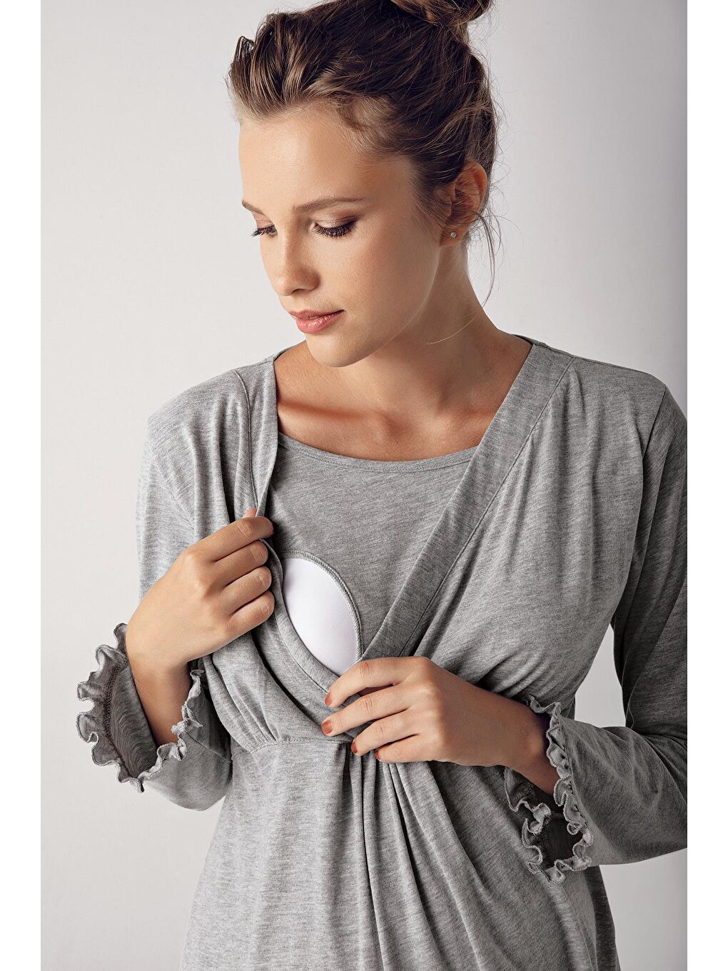 طقم بيجامة صباحية للحوامل من القطن المرن بأكمام طويلة للنساء باللون الرمادي 13300 مع عروض حصرية للخصومات، وتقسيط، ودفع عند الاستلام في LCW! تسوقي عبر الإنترنت الآن واستلمي المنتج عند باب منزلك! – S000192237-20600
