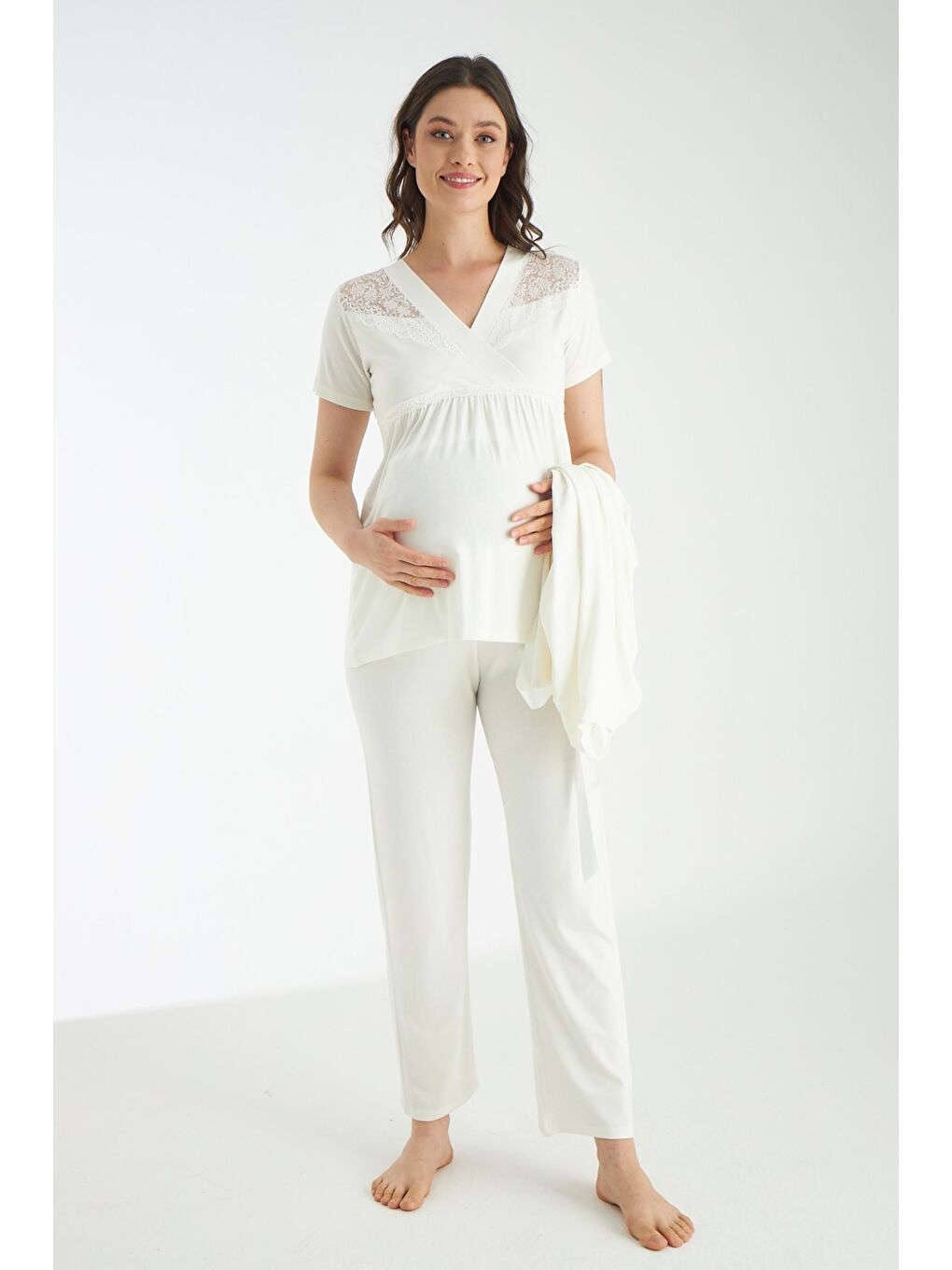 طقم بيجامة للأم الحامل والمرضع من 3 قطع مع تفاصيل دانتيل أبيض من MISS WORLD LISSA مع خصومات حصرية، تقسيط، ودفع عند الاستلام في LCW! تسوقي أونلاين الآن واستلمي المنتج عند باب منزلك! – S000366754-20063