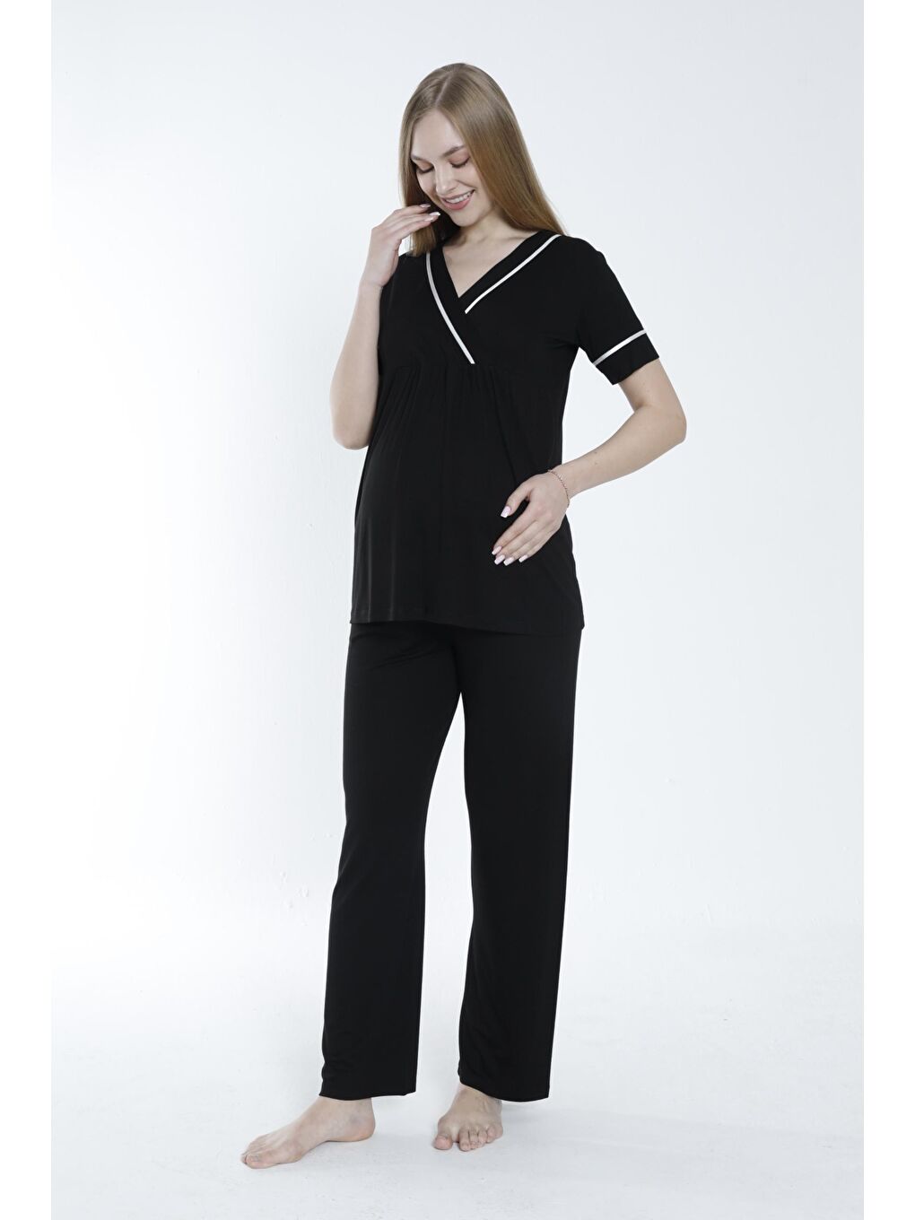 طقم بيجامة للحمل والرضاعة من MISS WORLD LISSA باللون الأسود مع تفاصيل شرائط، مع خصومات حصرية وخطط تقسيط ودفع عند الاستلام في LCW! تسوقي عبر الإنترنت الآن واستلمي المنتج عند باب منزلك! – S000360213-19351