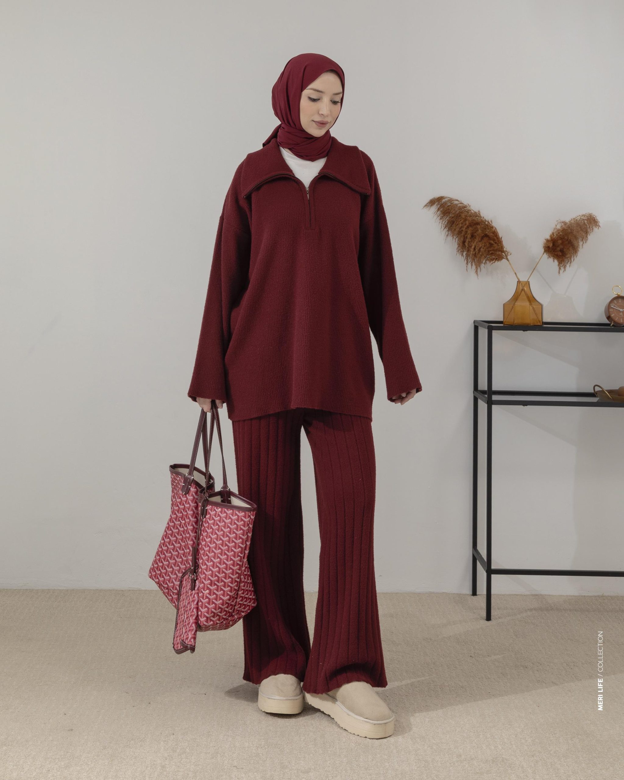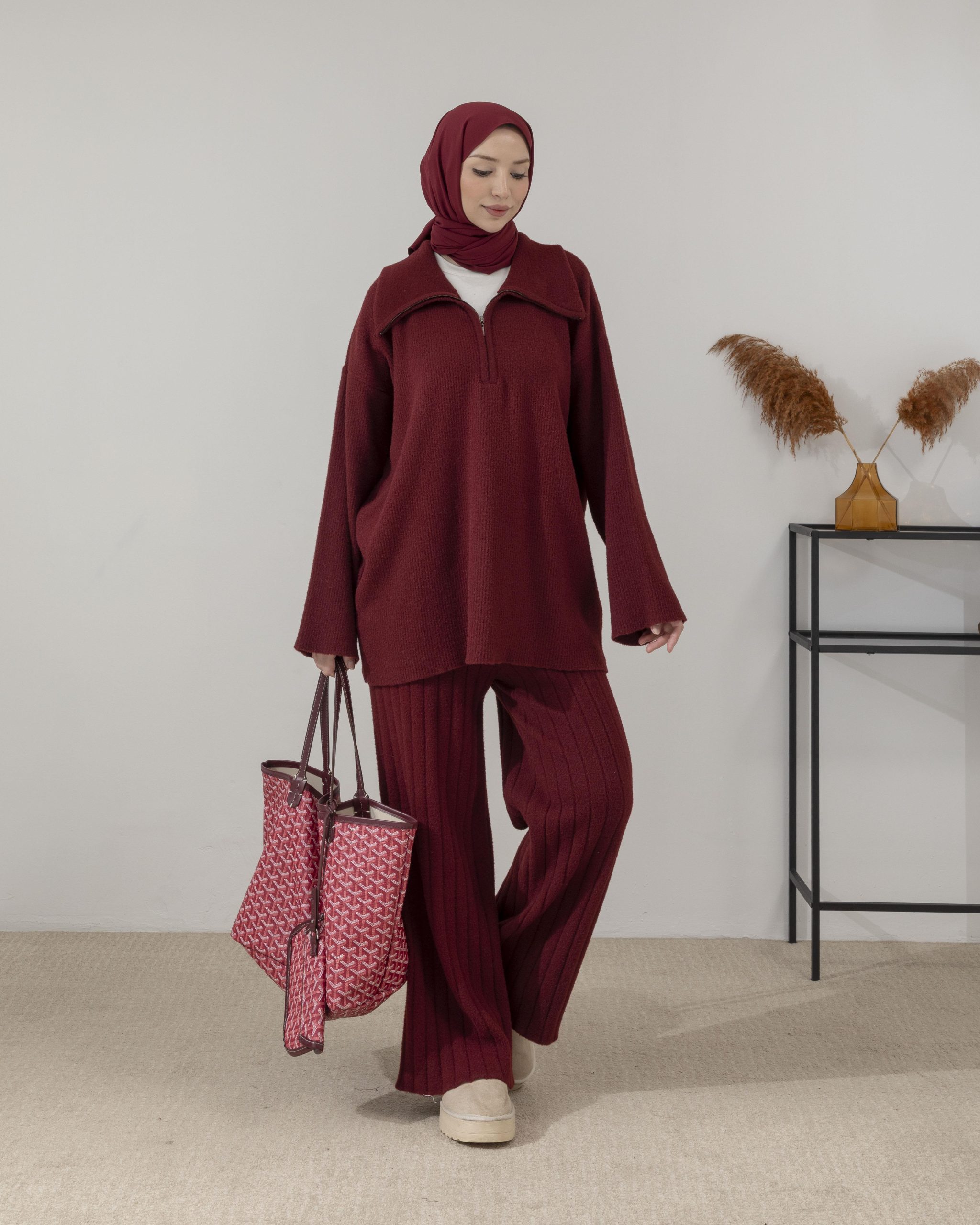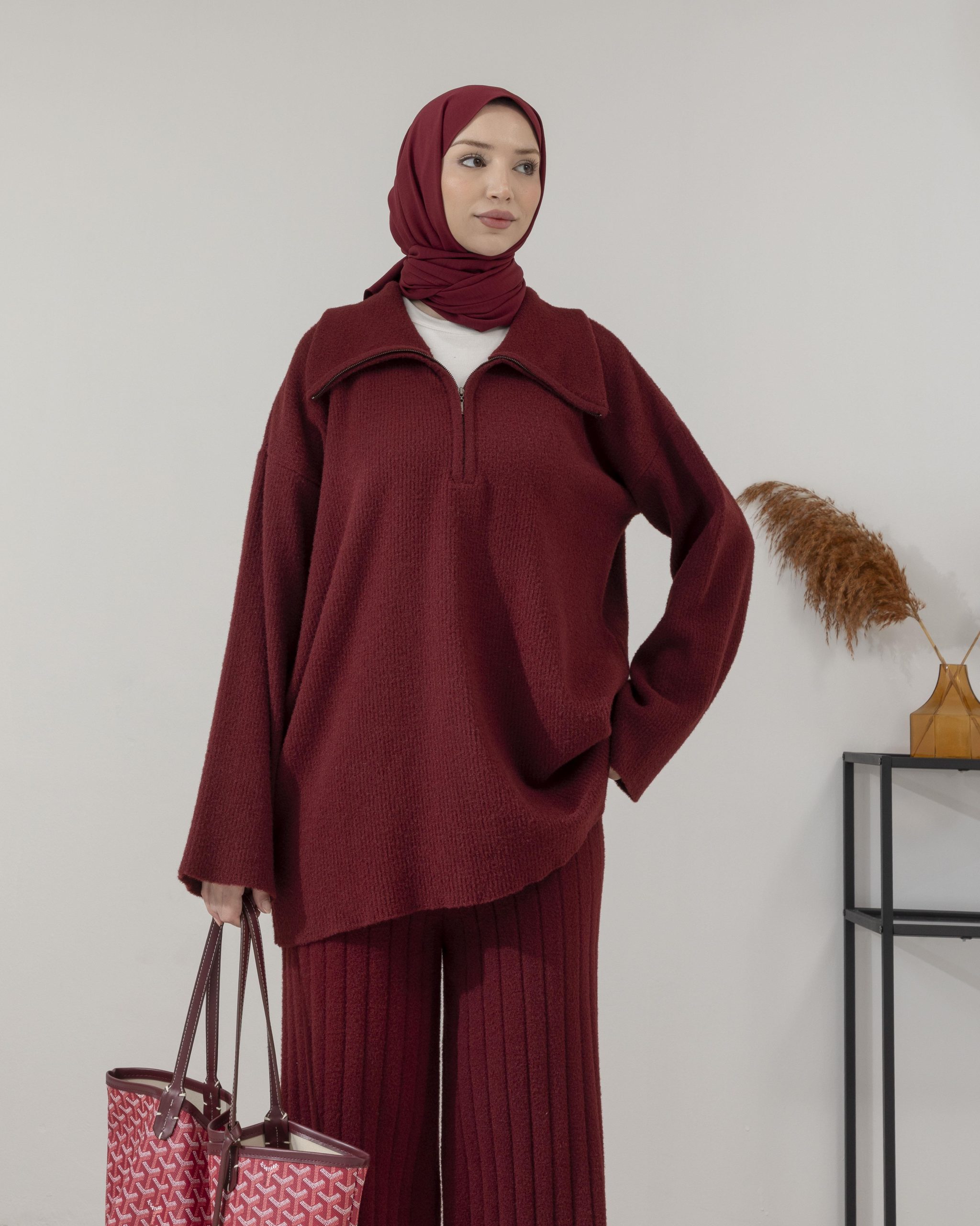 طقم تريكو بوردو مزود بسحاب